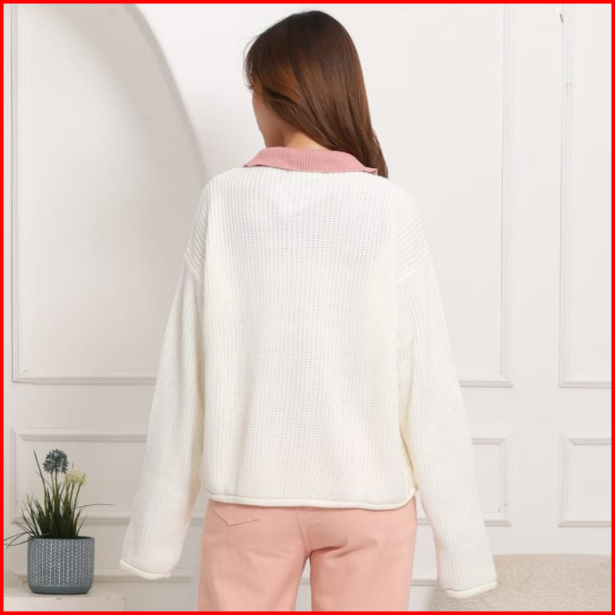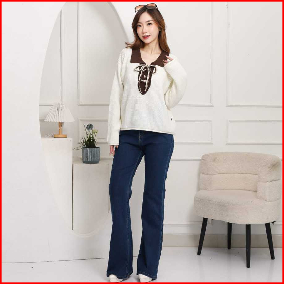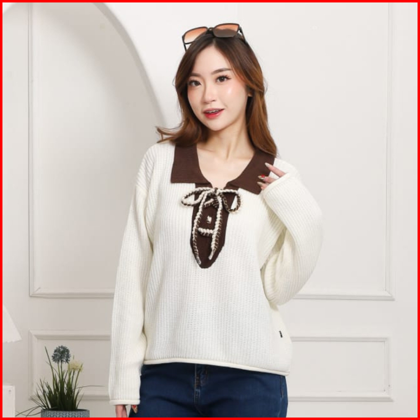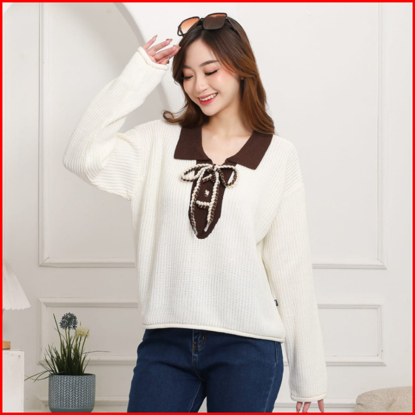 Mky Clothing Blouse Rajut Kerah Tali Blus Lengan Panjang