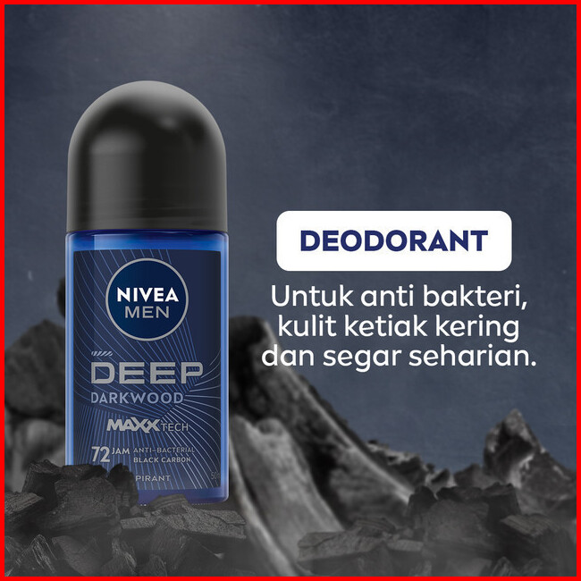 Nivea Men Deodorant Roll On Deep Darkwood 50ml - Deodoran Pria Melawan Bakteri Keringat Bau Badan Dengan Wangi Parfum Pr