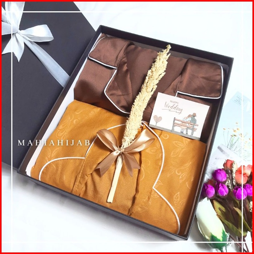Hampers Wedding Piyama Couple Hardbox Exclusive Kado Pernikahan Baju Tidur Pasangan Custom Card Hadiah Anniversary