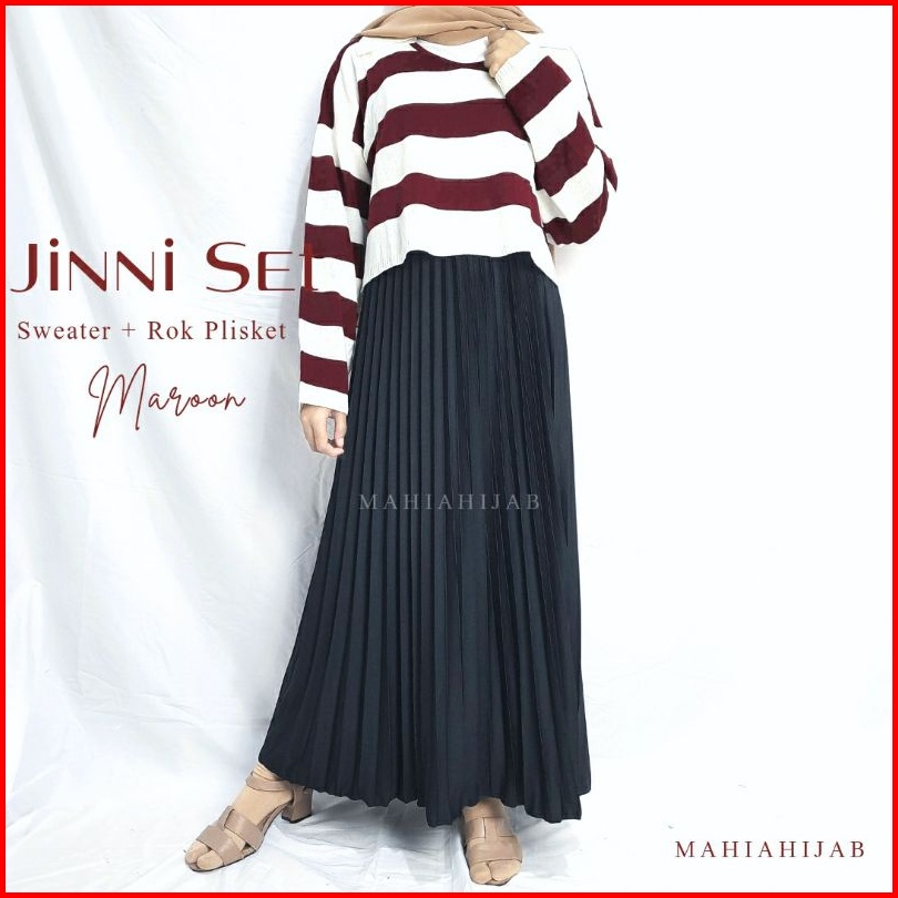 Jinni One Set Sweater Rajut Rok Plisket Outer Fuji Knit Sweater Crop Setelan Wanita Rajut Premium