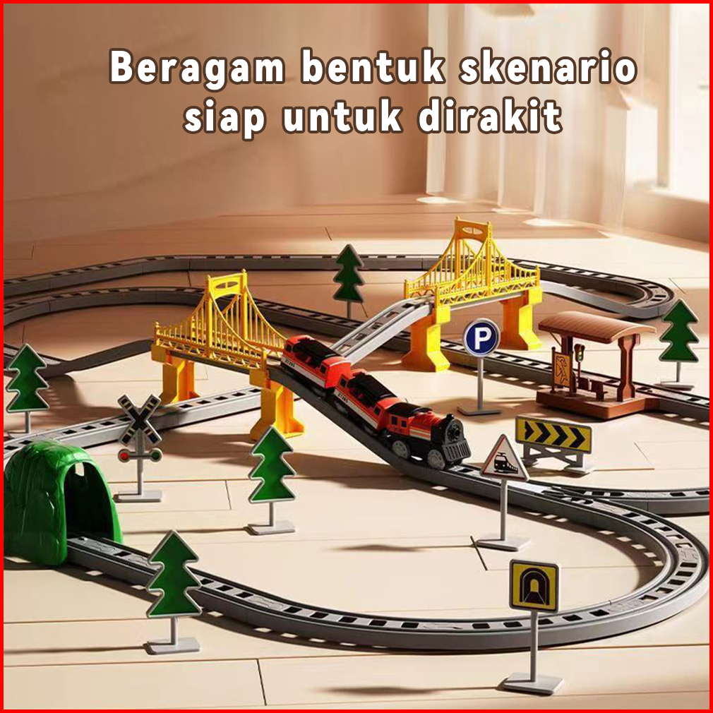Tatajoy Kereta Api Mainan Rel Panjang Mainan Diy Kereta Rel Listrik Kereta Api Rail King Mainan Anak Laki Laki