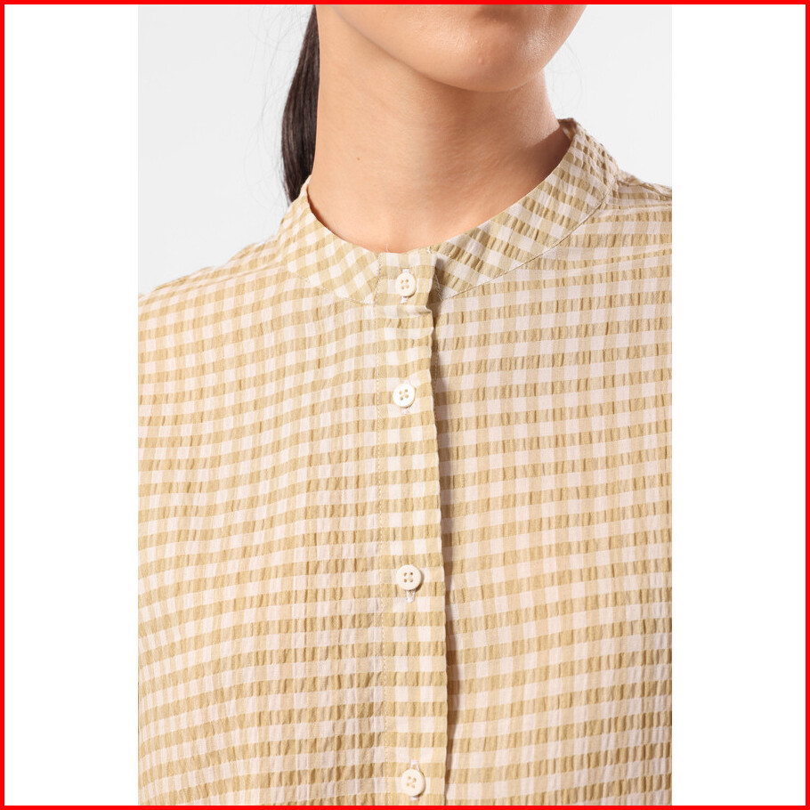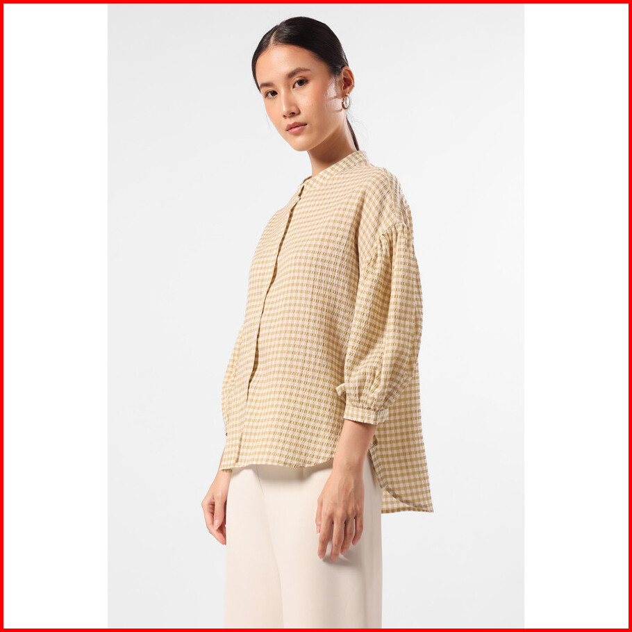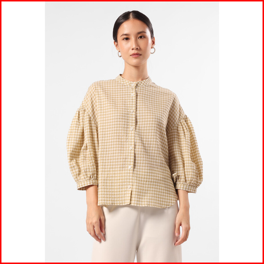 Minimal - Harmony - Plaid Blouse Lengan Balon Wanita - Brown