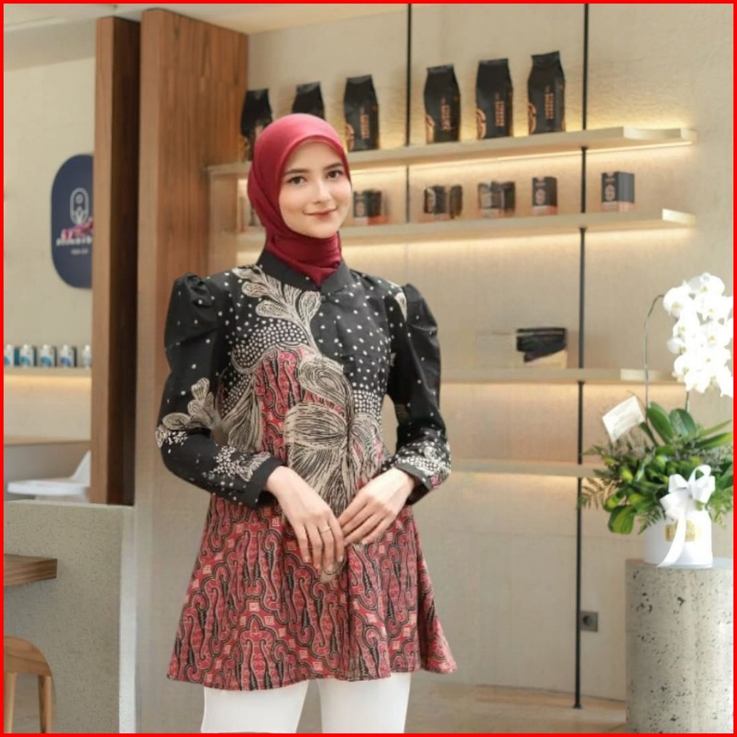 Batik Namara - Blouse Seragam Batik Wanita Modern Lengan Panjang Simple Manis Dan Busui Friendly