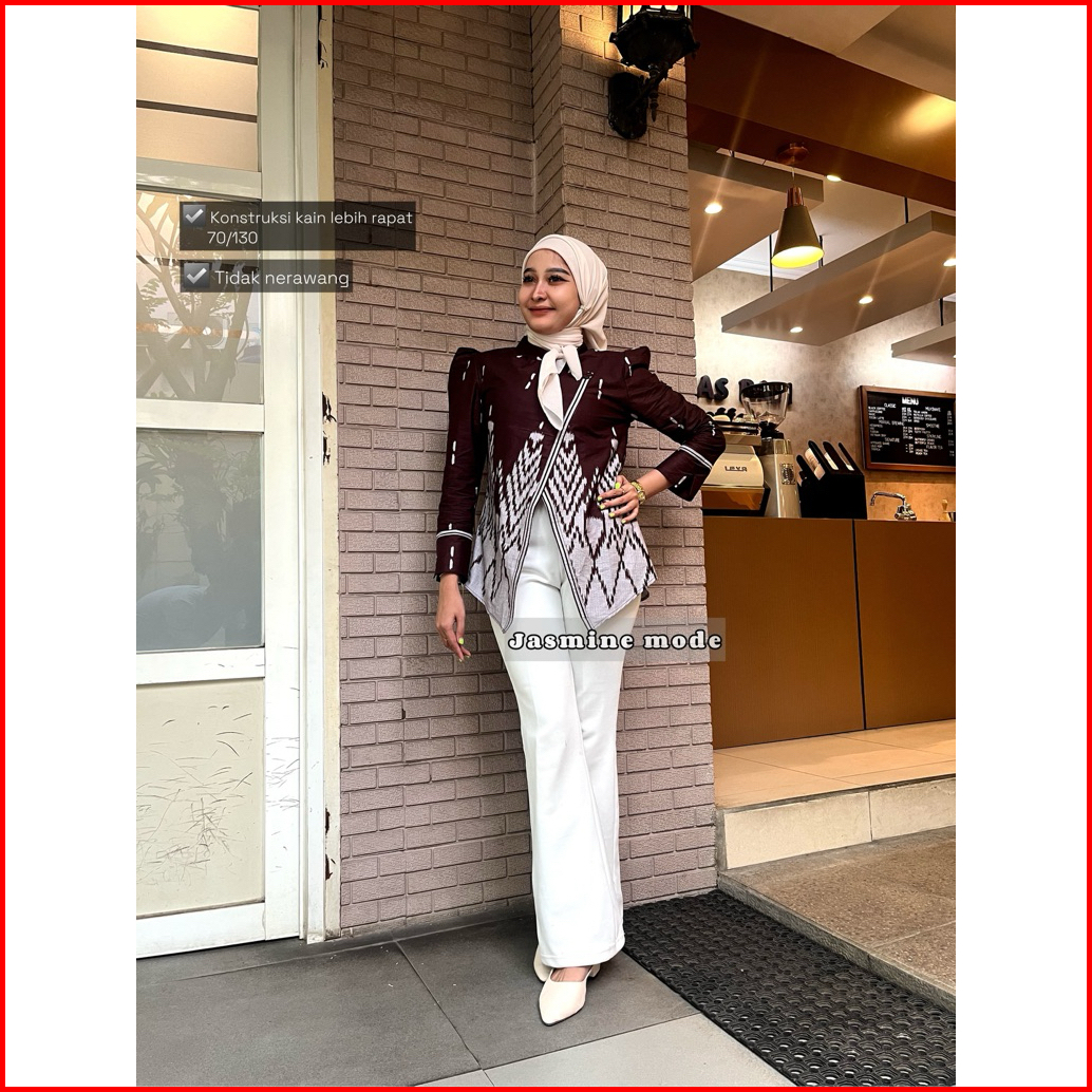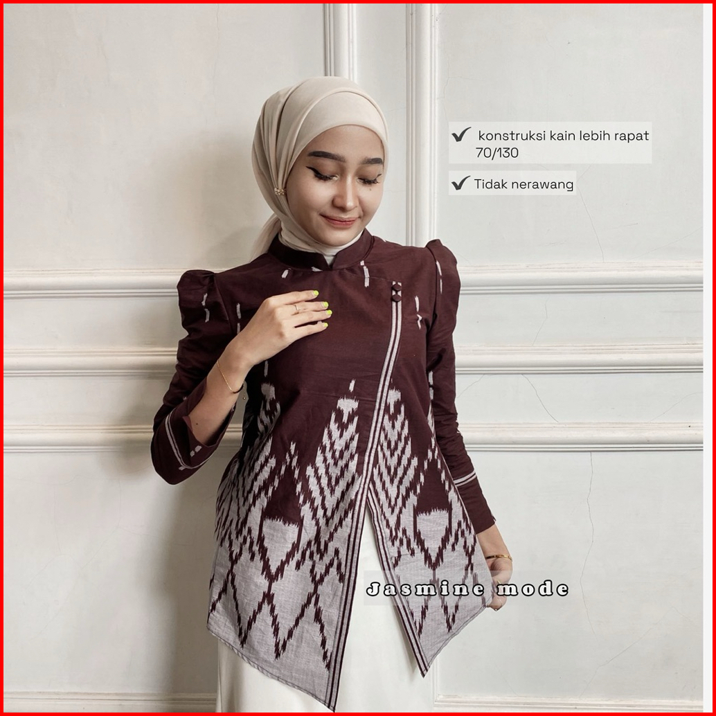 Atasan Batik Wanita Kebaya Janggan Motif Songket Lengan Panjang Bahan Katun Tebal