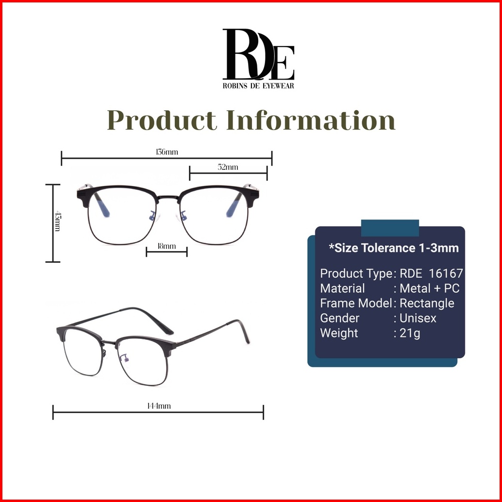 Robins Kacamata Bisnis Kotak Untuk Wanita Pria Bisa Minus Photocromic Blueray 16167