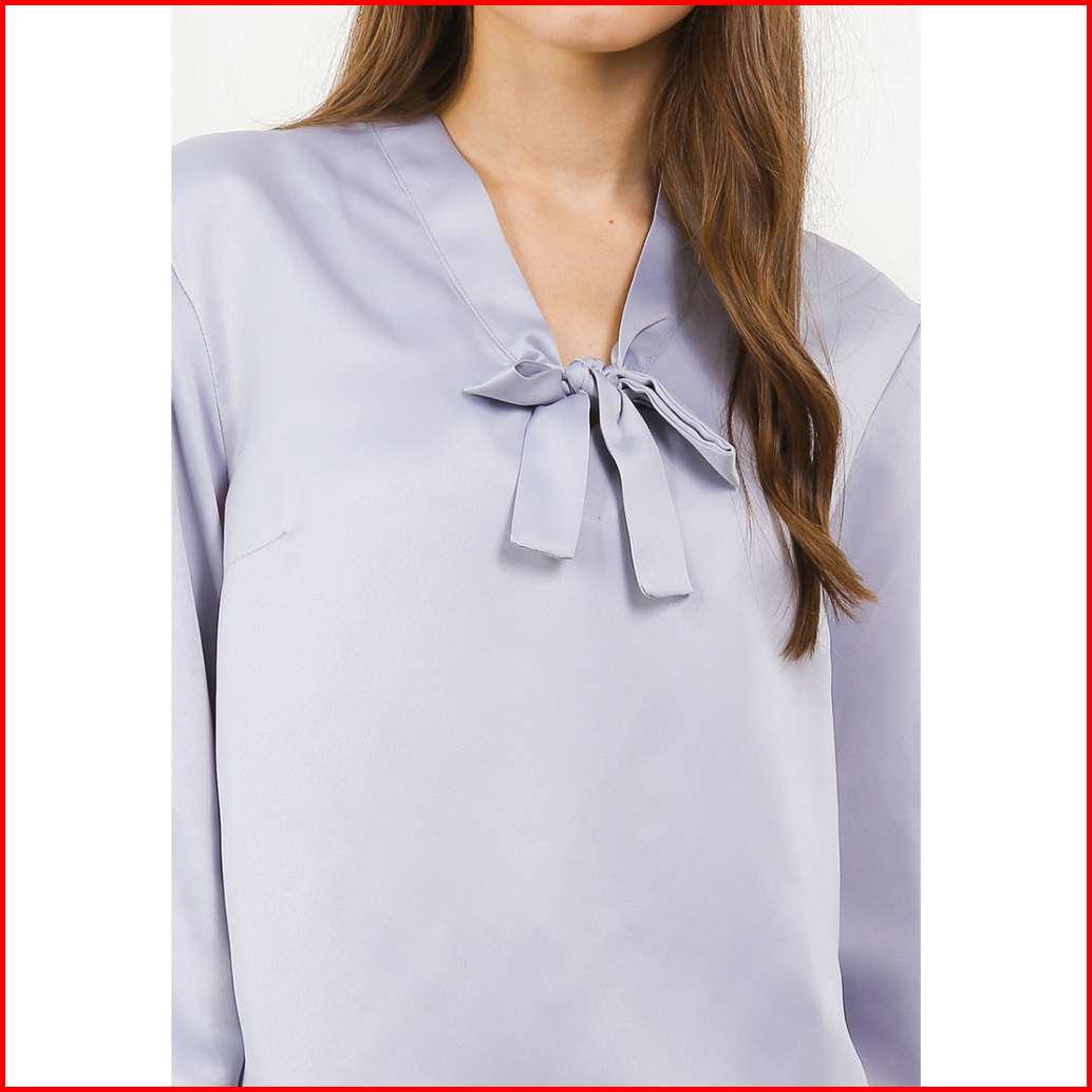 Llaces Clothing - Blouse Wanita - Ribbon Neck Tie Blouse - Silver