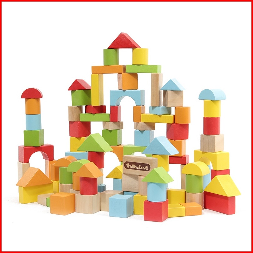 Mainan Balok Susun Kayu Building Block 100 Pcs Mainan Balok Susun Kayu Dengan Tas Penyimpanan