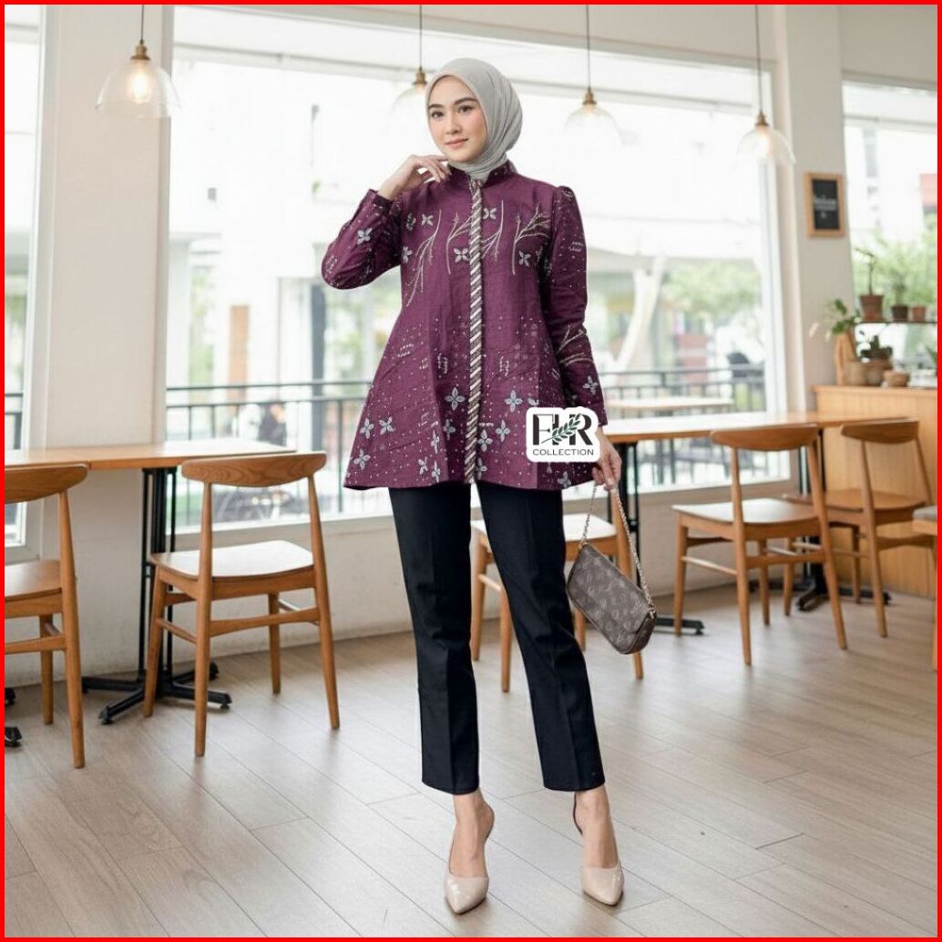 Atasan Blouse Batik Wanita Modern Lengan Panjang Seragam Kantor Kerja