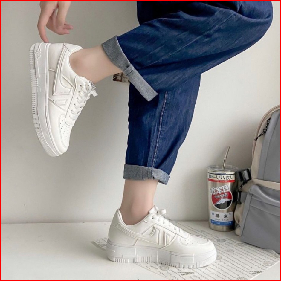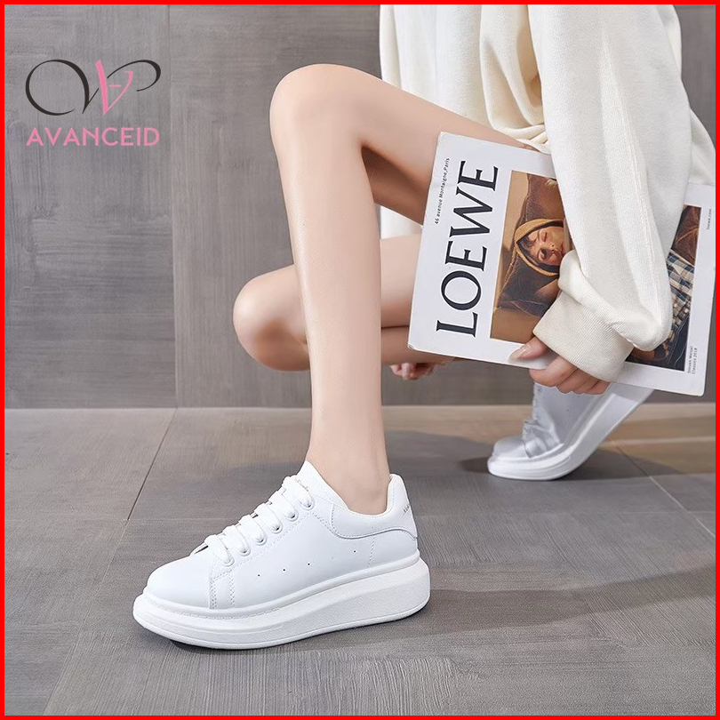 Avanceid Koleksi Polos Putih Sepatu Sneakers Wanita Sekolah Kerja
