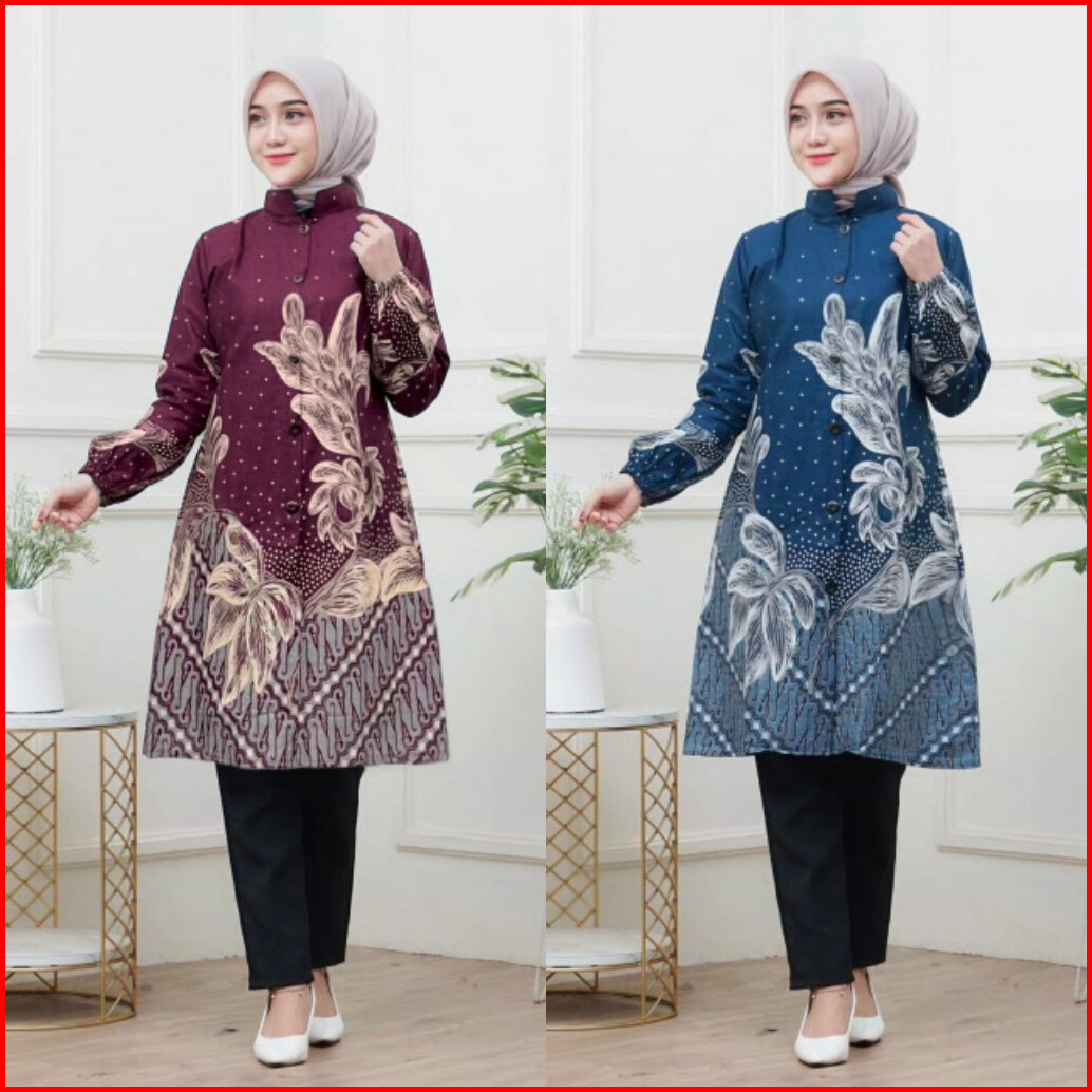 Baju Atasan Tunik Batik Wanita Terbaru Batik Kerja Wanita Batik Seragam Kerja Kantor Seragam Hajatan