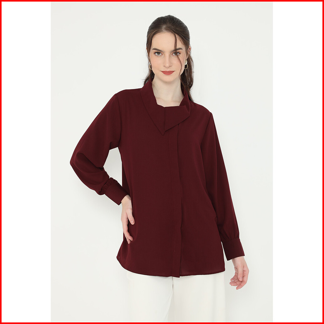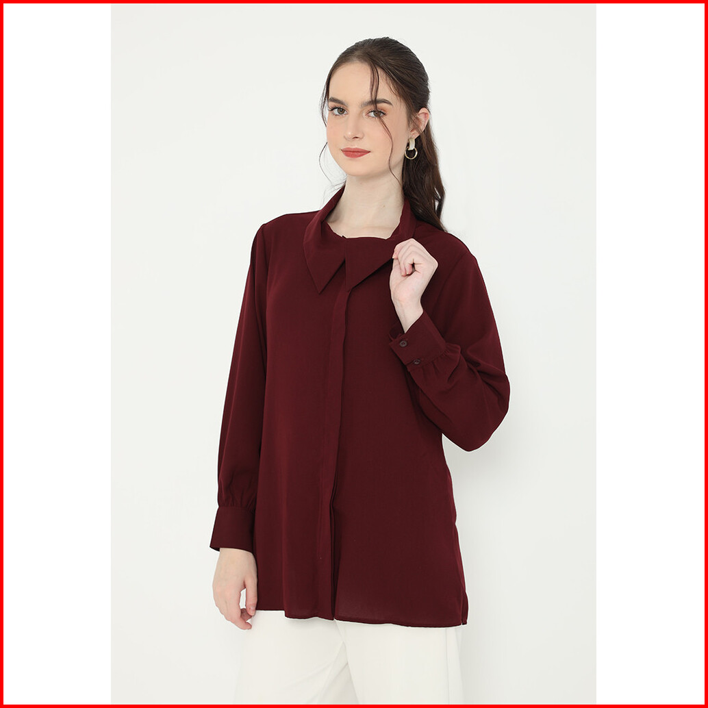 Blus Lengan Panjang Marun Draffery Blouse Long Sleeve In Maroon By Brilliant Girl