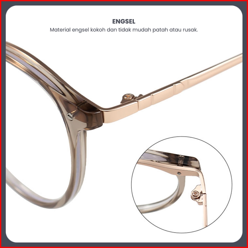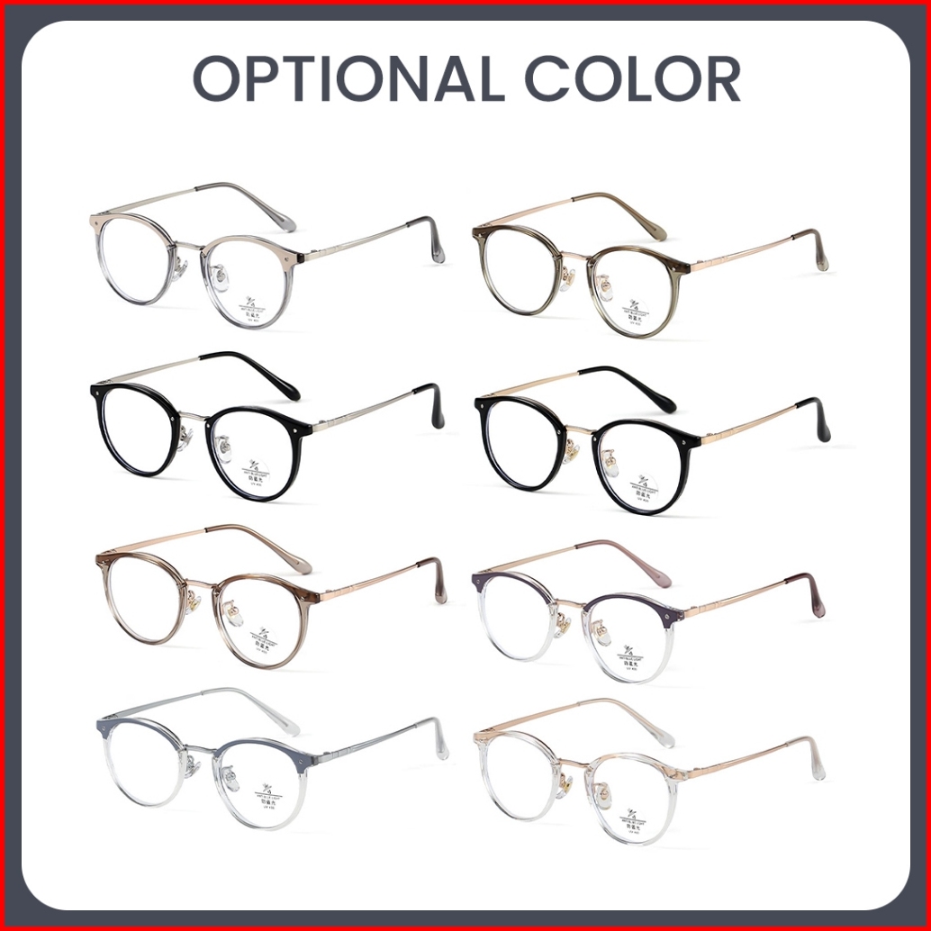 Robins Kacamata Minus Bulat Anti Radiasi Blueray Photocromic Bluecromic Metaltr Fashion Pria Wanita S11992