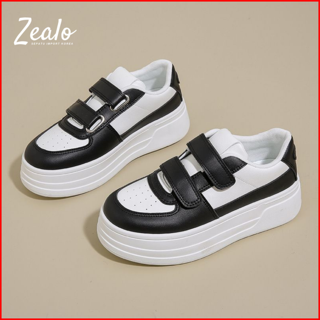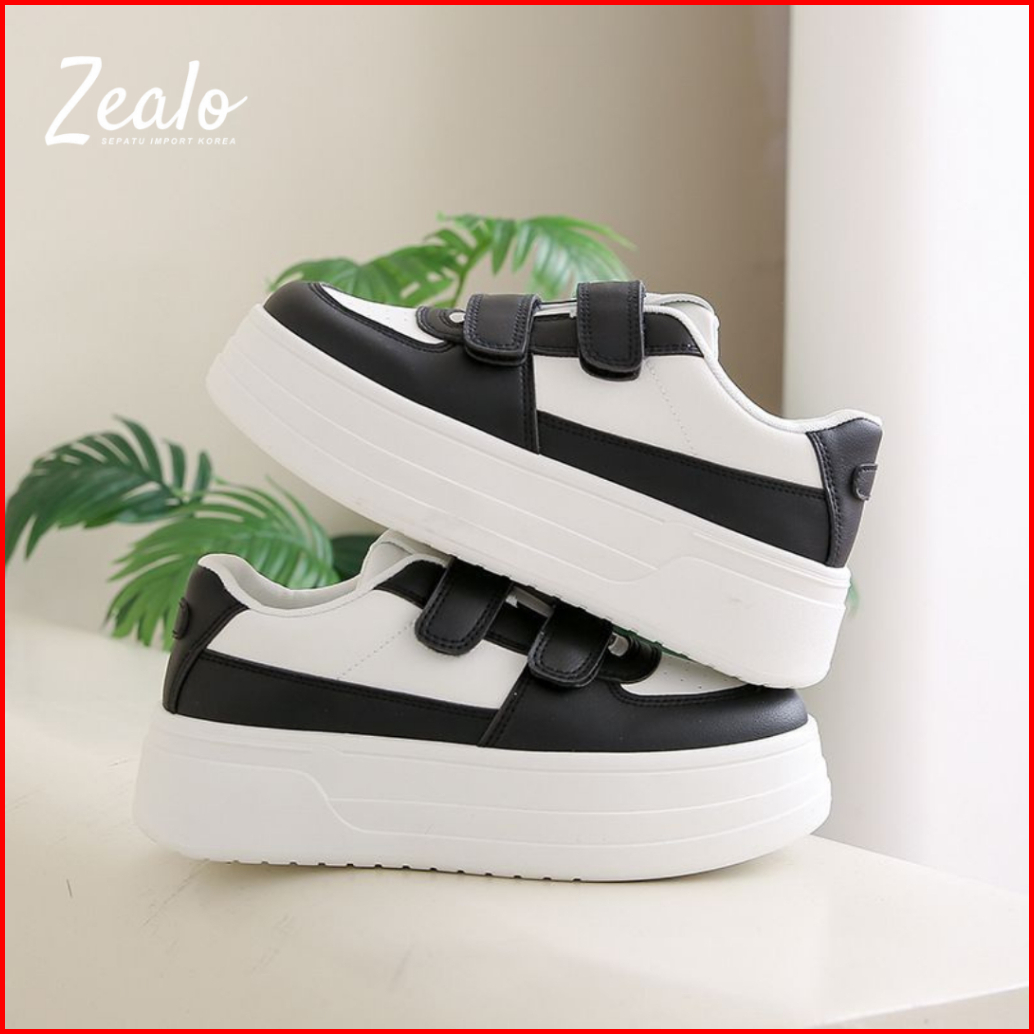Zealo 375 Sepatu Sneakers Wanita Model Strap Casual Fashion Korea Cream Hitam Putih Shoes Sport Tebal 5cm Empuk Trendy