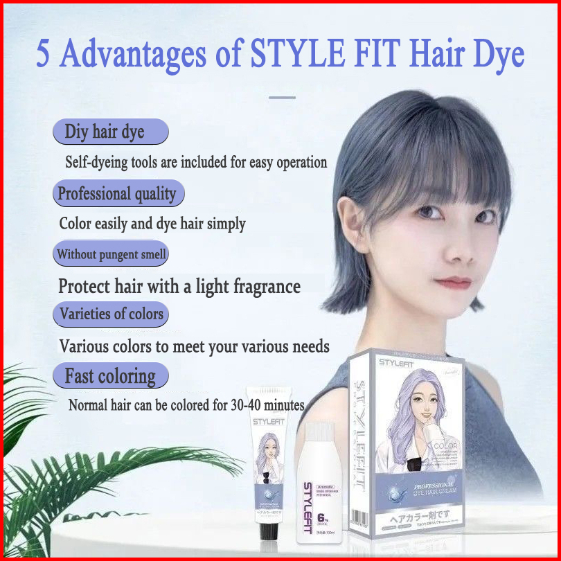 Warna Rambut Trendi 2024tahan Lama Style Fit Milk Tea Ash Hair Color 200ml Sari Tumbuhan Murni Tidak Memerlukan Pemutiha