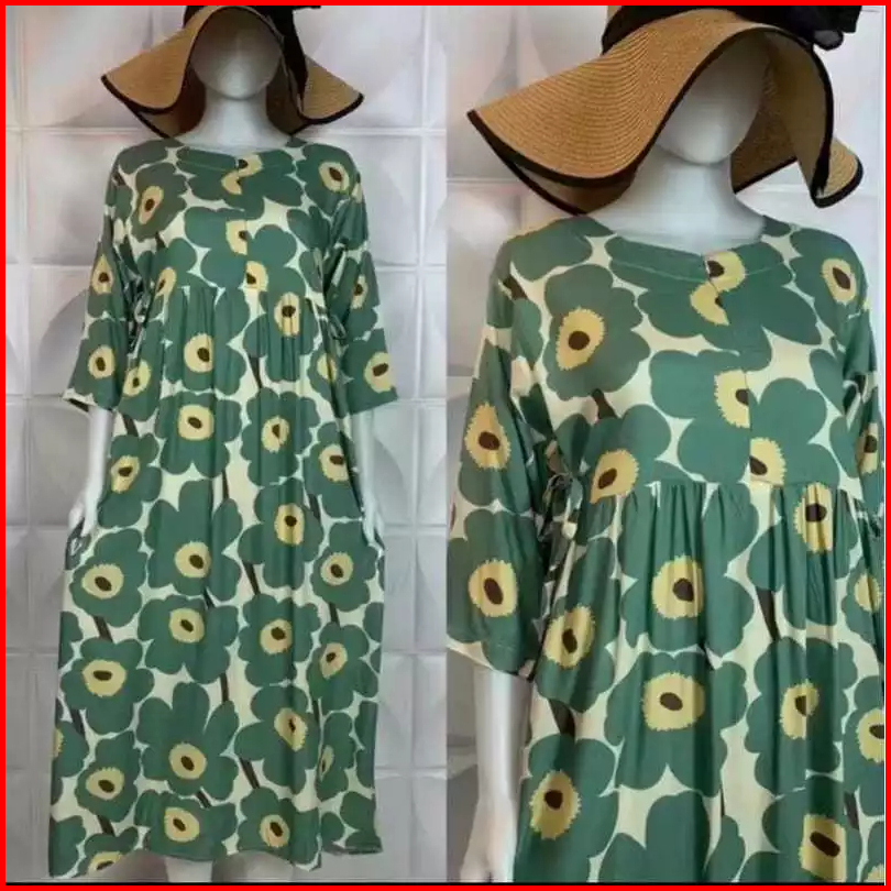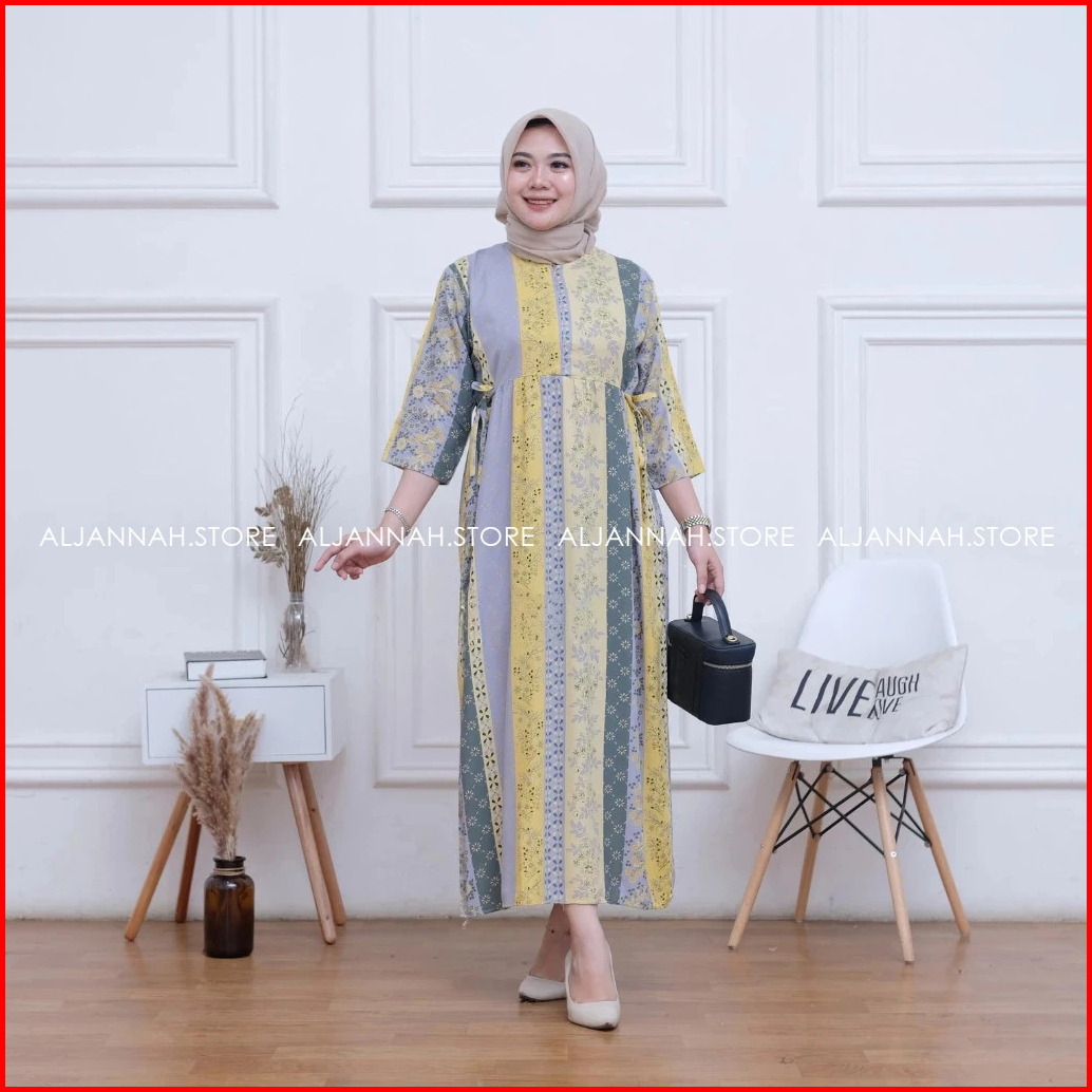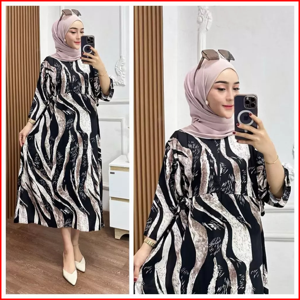Miranda Daster Dress Lengan 3 4 Rayon Minimalis Retro