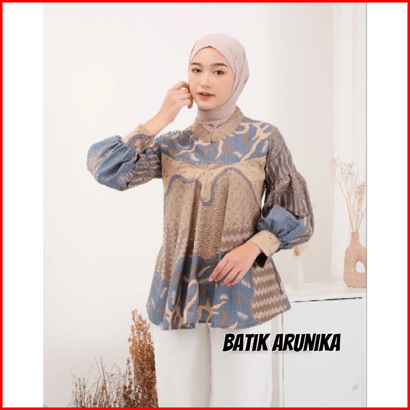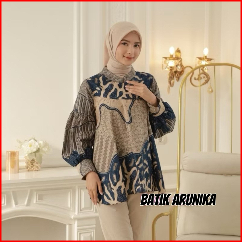 Batik Wanita Modern Baju Batik Kantor Atasan Batik Lengan Panjang Motif Listia