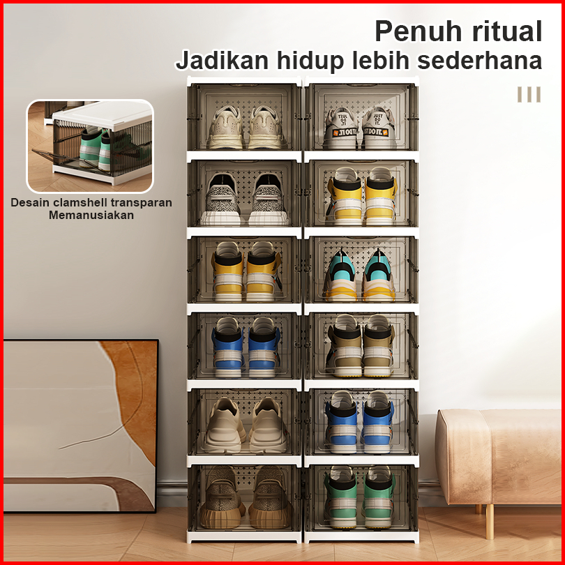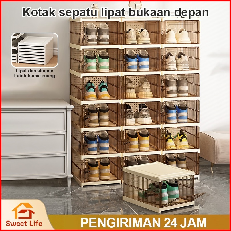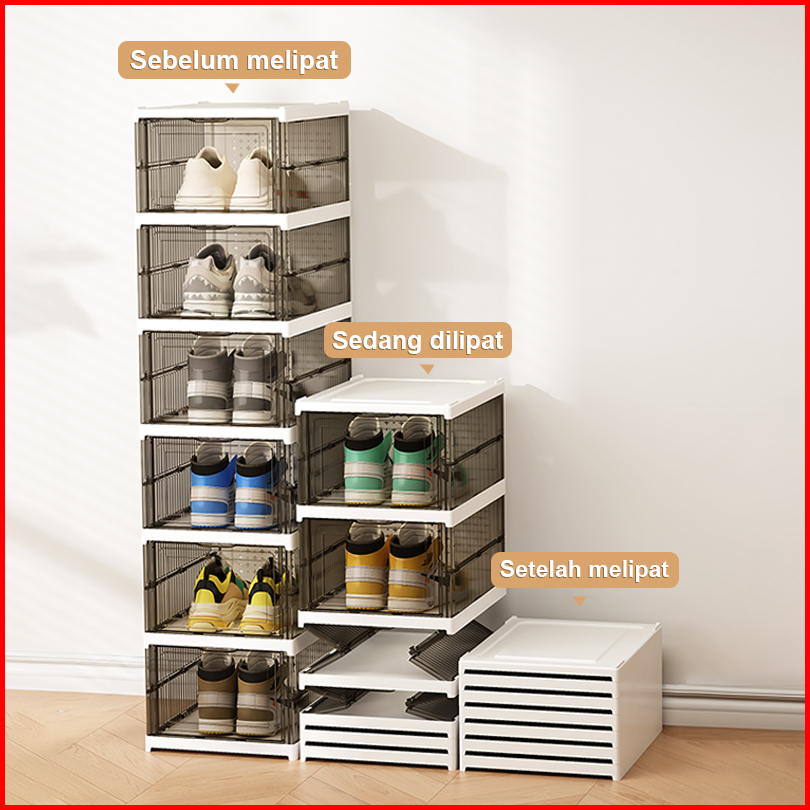 Kotak Sepatu Lipat Rak Sepatu Lipat 6 Tingkat Serbaguna Penyimpanan Vertikal Portable Rak Sepatu Susun Tertutup Lemari S