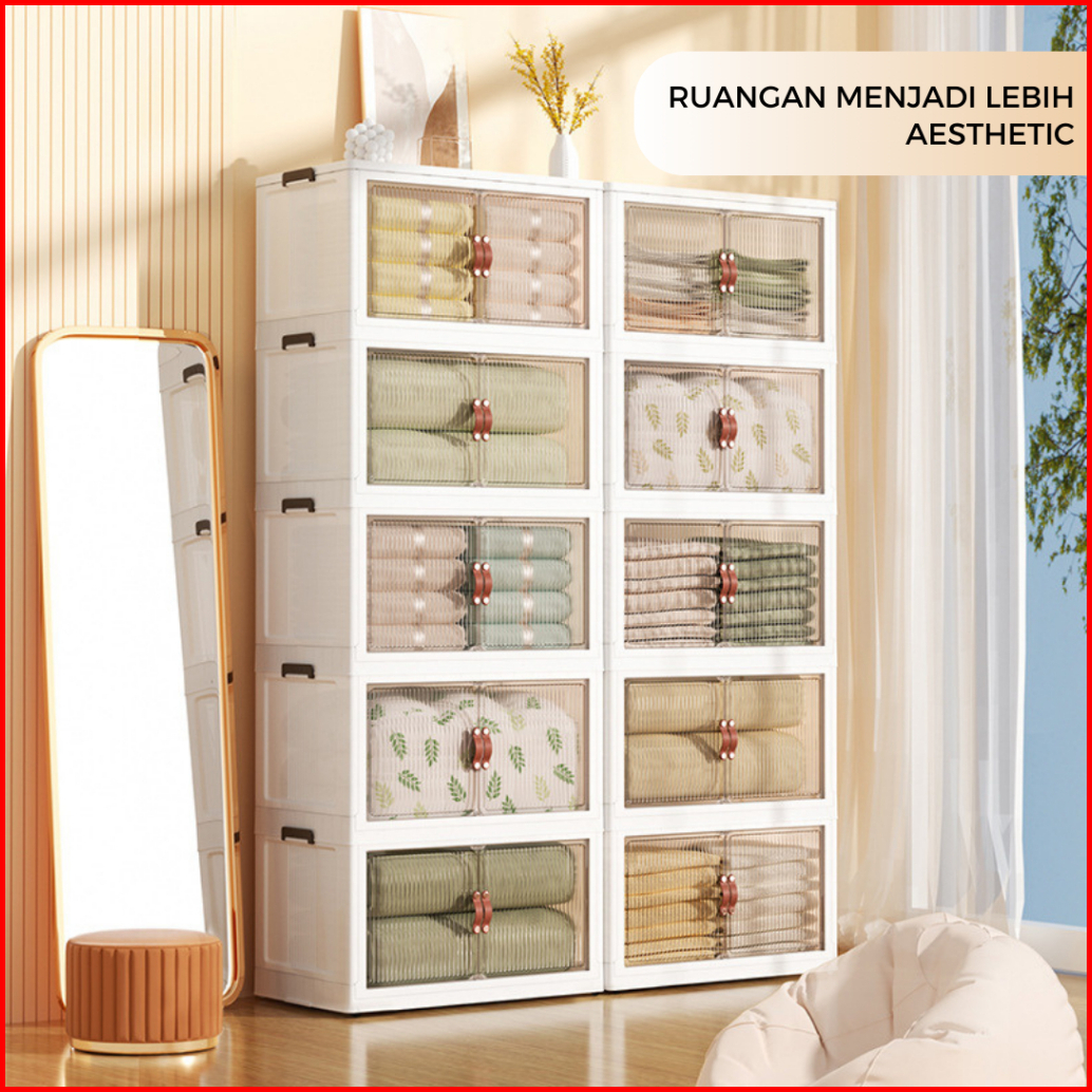 Goodbaby Lemari Lipat Lemari Plastik Baju Rak Susun Serbaguna 1 2 3 4 5 Susun Rak Sepatu Susun Tertutup Wardrobe Storage