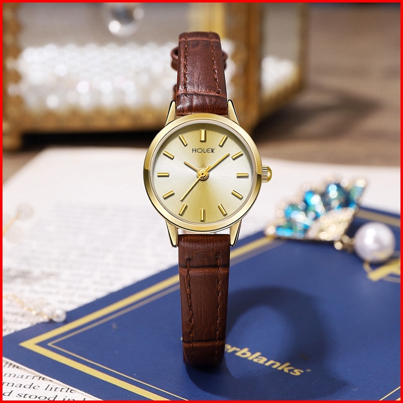 Holek 6331 Jam Tangan Wanita Kecil Anti Air Elegan Indah Tali Kulit Jam Tangan Cewek Kotak Gratis