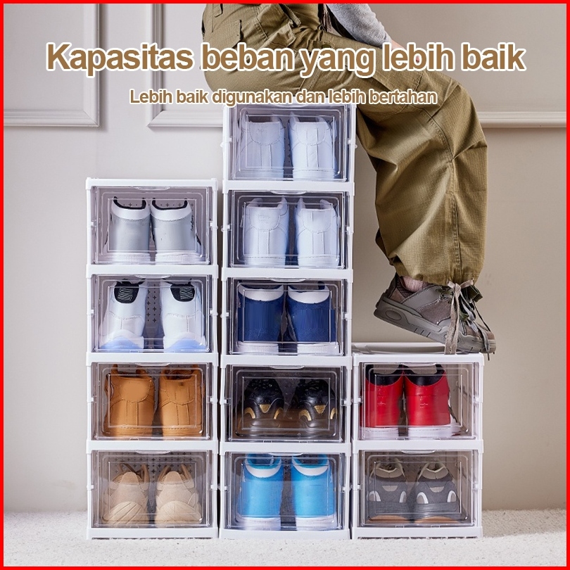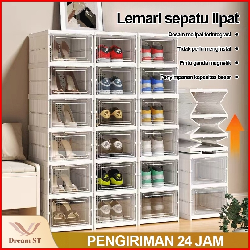Dream Street Kotak Sepatu Lipat Rak Sepatu Lipat Lemari Sepatu Lipat Kotak Sepatu Transparan Plastik Lemari Multifungsi