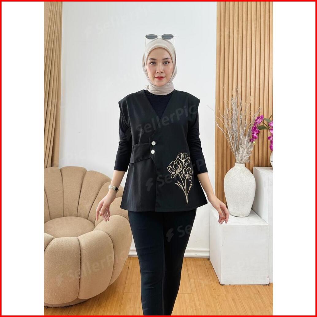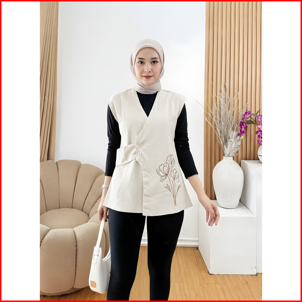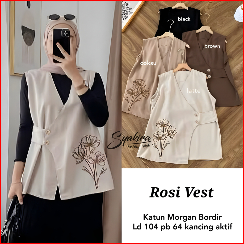 Elewys.id - Rosi Vest Twill Bordir Wanita Korean Style Ready Jumbo Atasan Rompi Wanita