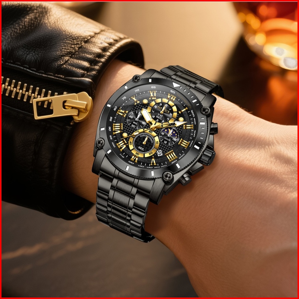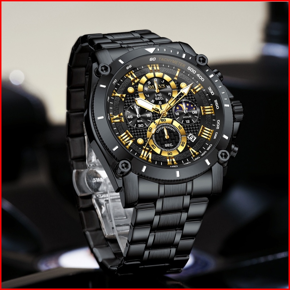 Olevs Jam Tangan Pria Anti Air Original Stainless Steel Keren Terbaru Luminous Kalender Luxury Men Watch