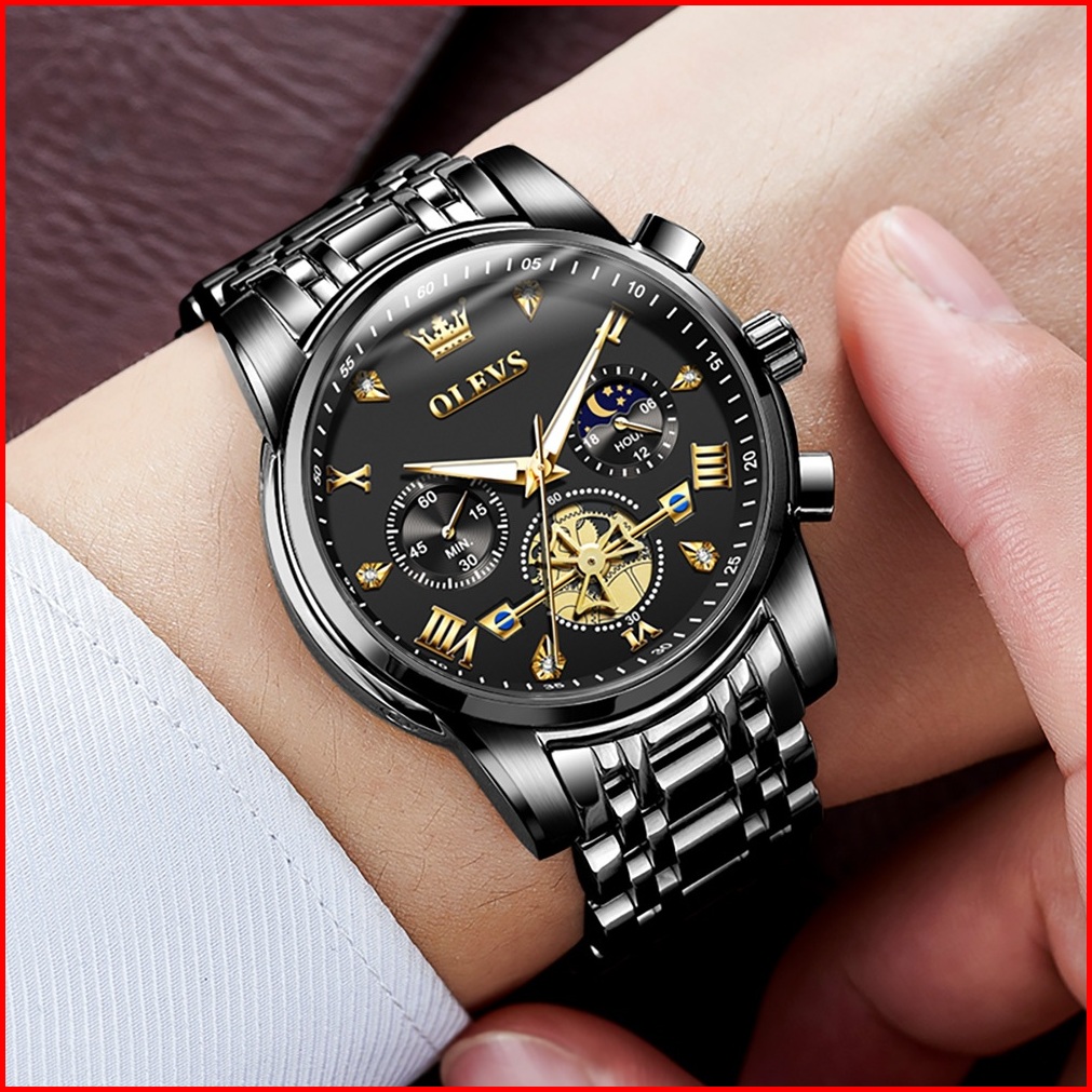 Olevs Jam Tangan Pria Anti Air Original Keren Terbaru Luxury Chronograph Stainless Steel Watch Men