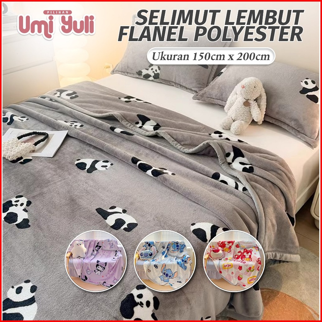 Umi Yuli - Selimut Lembut Halus Bahan Flanel Polyester Uk 150x200cm Dengan Motif Hewan Berkualitas