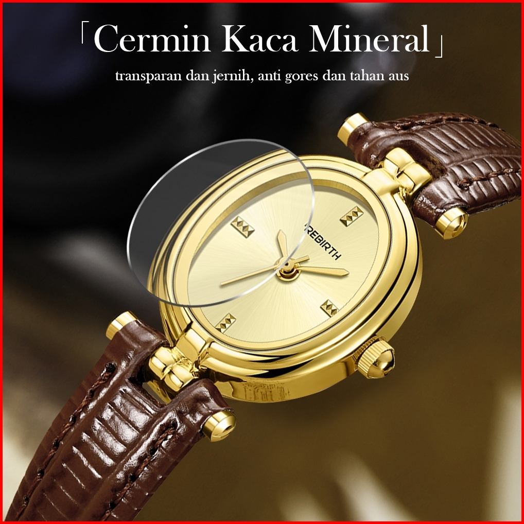 Rebirth Jam Tangan Wanita Korea Anti Air Original Antik Elegan Tali Kulit Jam Tangan Cewek Jam Kecil