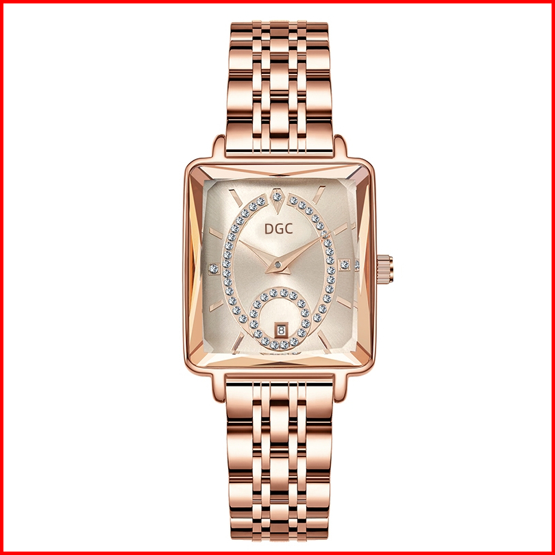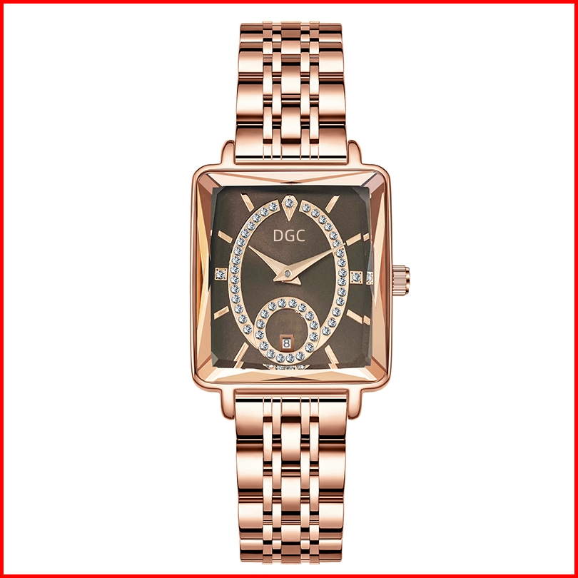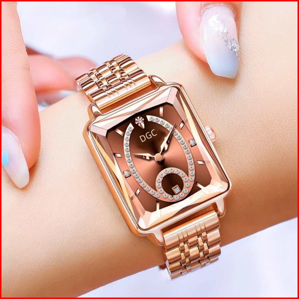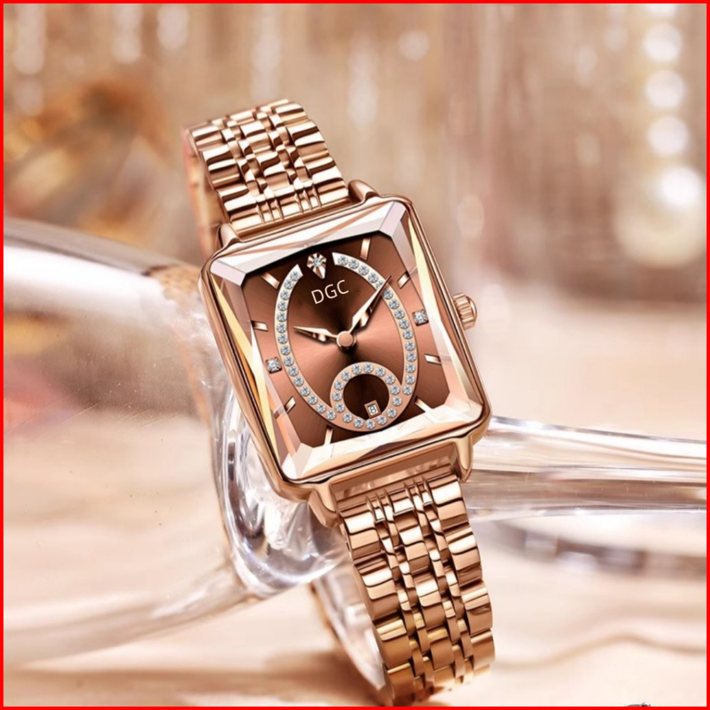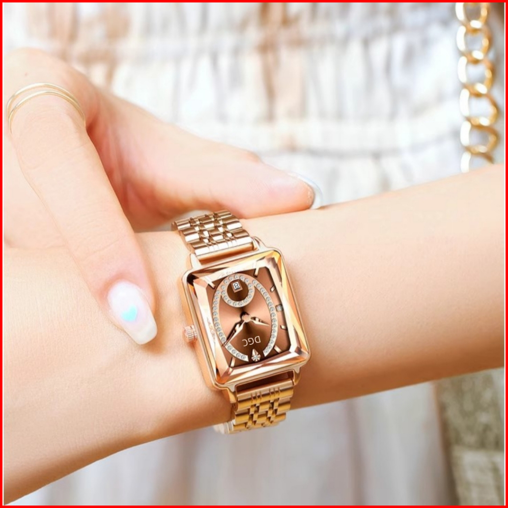Jg179 Jam Tangan Stainless Steel Fashion Mewah Jam Tangan Wanita Analog Quartz Dial Persegi
