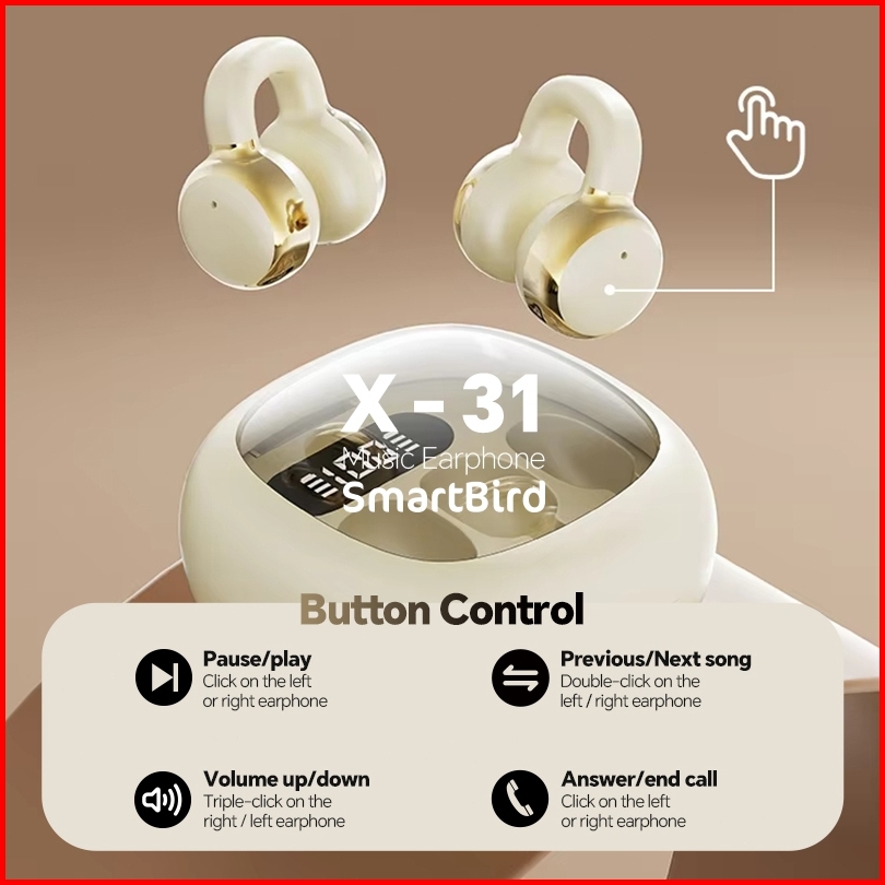 Smartbird Earphone X31 Bluetooth 5.4 Open Ear Clip Hi-fi Tws Wireless Headset Digital Power Display Headphone Built-in M