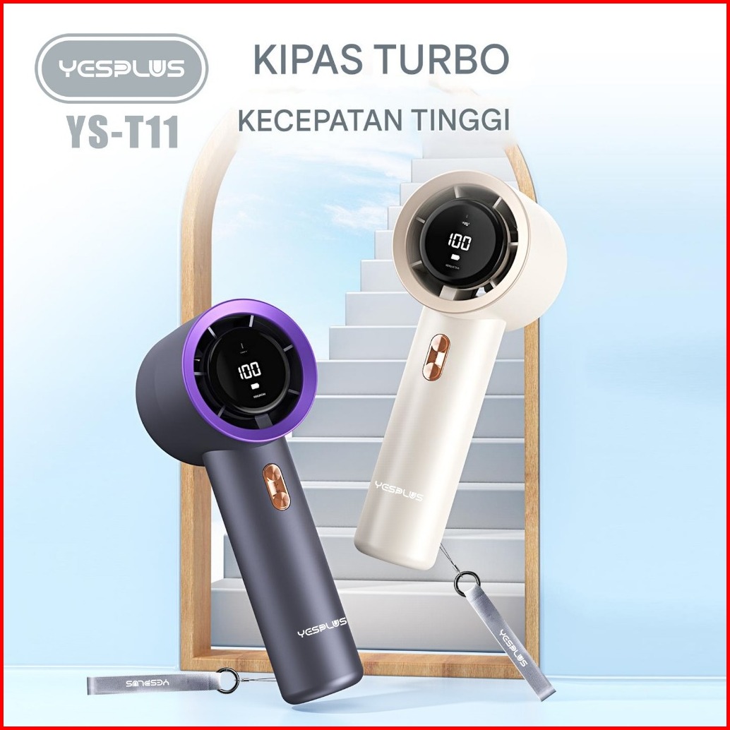 Kipas Portable Mini Yesplus T-11 High Speed Turbo Handheld Stand Up Desktop Led Digital Display