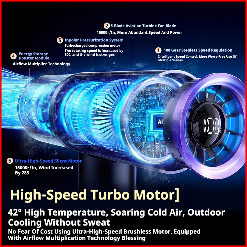 Dr.spock Mini Kipas Angin Portable High Speed Kipas 100 Gear Wind Adjustable Turbo Kipas Tangan Hf02