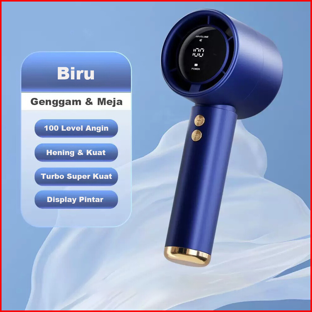 Kipas Mini Fan Tangan Genggam Meja 100 Level Angin Turbo Super Display Pintar