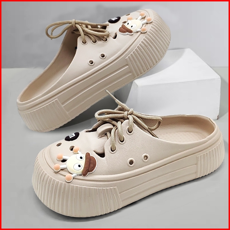 Elfelde Sandal Wanita Kekinian Tinggi Empuk Sandal Fuji Wanita Wedges Korea Sandal Jelly Wanita Lace-up