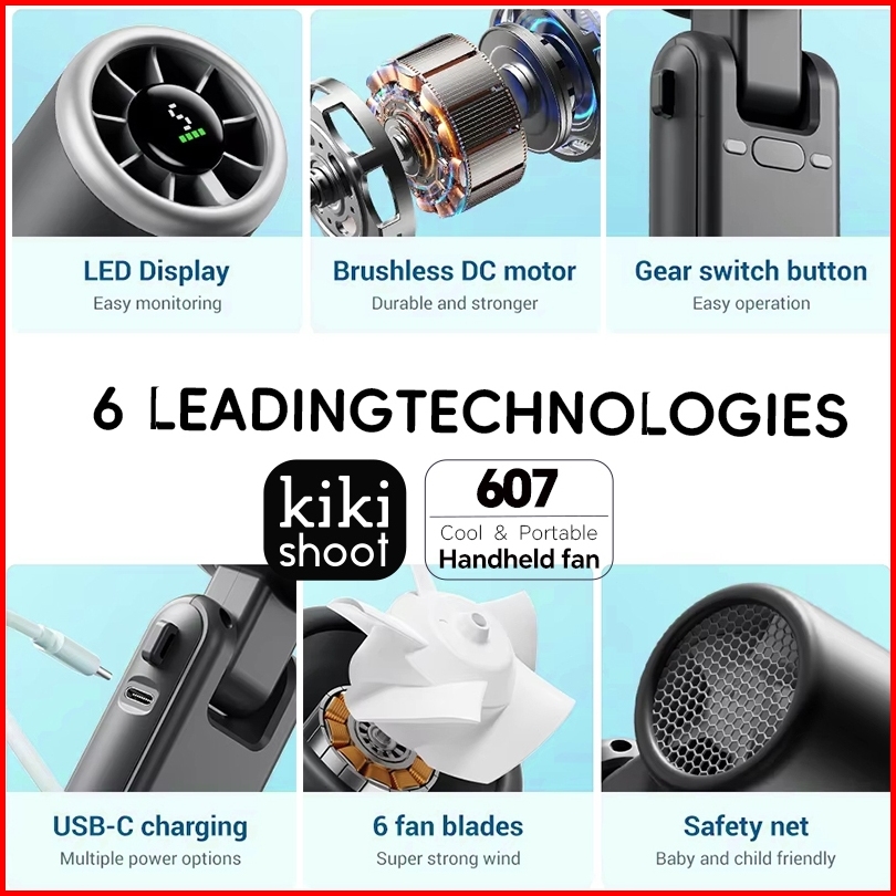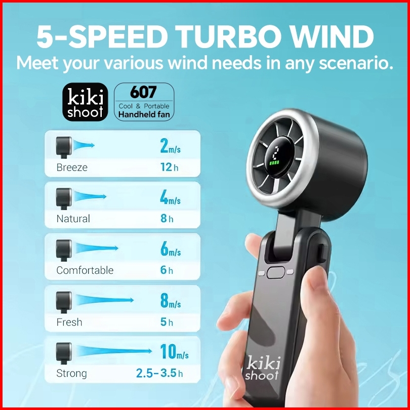 Kikishoot Fan 607 Cool Handheld Foldable Super Wind Ultra-high Speed Digital Display Mobile Fan Brushless-motor Turbocha