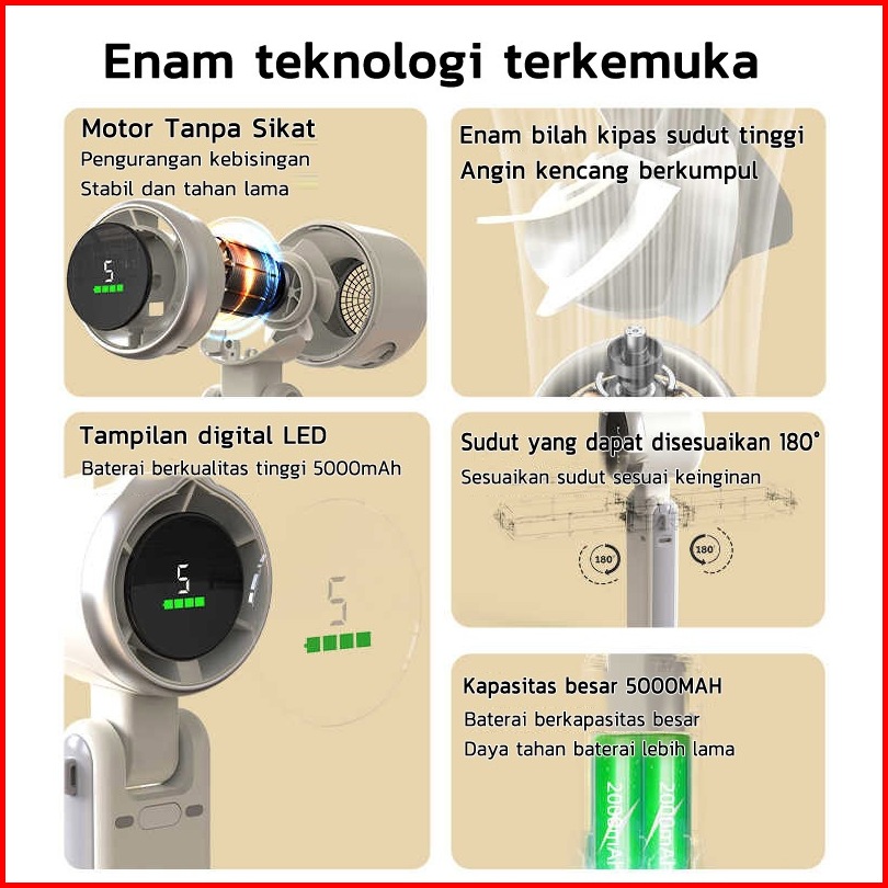Prince N607 High-speed Portable Handheld Fan 5000mah Minikipas Strong Wind 100 Gear Wind Speedkipas Angin Digital Displa