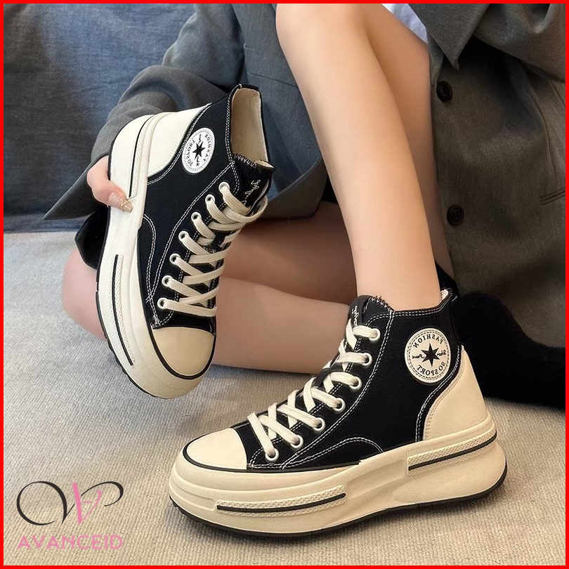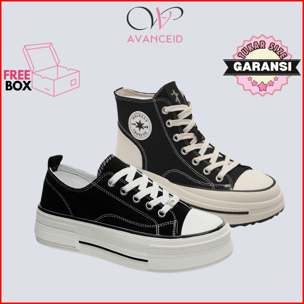 Avanceid 1896 1900 Sepatu Sneakers Boots Wanita Sekolah Kerja Canvas Putih Hitam