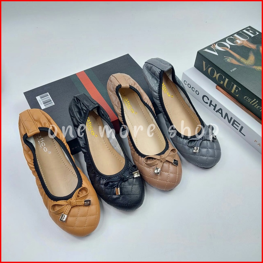 Rindu Sepatu Flatshoes Wanita Kerut Pita Roll Dr32