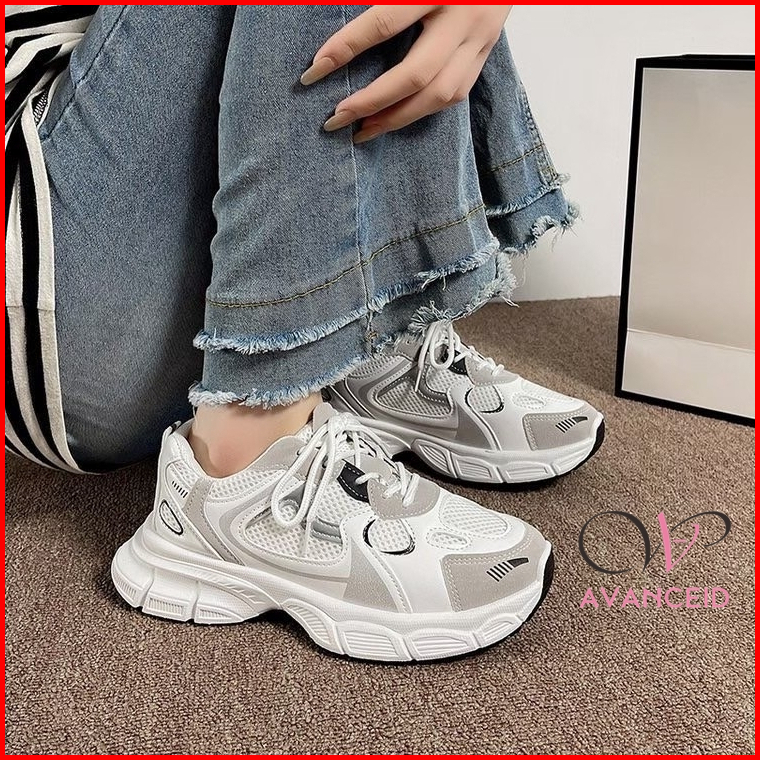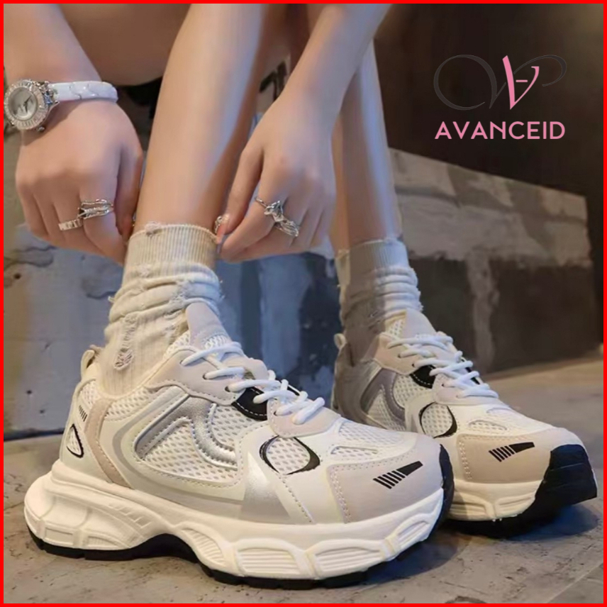 Avanceid Minji Sepatu Sneakers Wanita Sekolah Kerja Hitam Putih