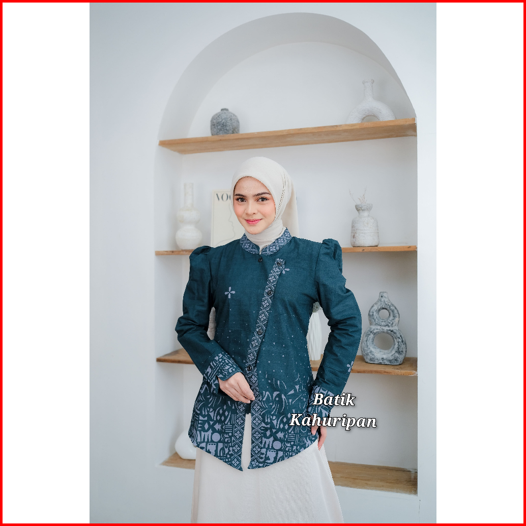 Baju Batik Wanita Modern Lengan Puffy Batik Kimono Kancing Depan Motif Karina By Batik Kahuripan