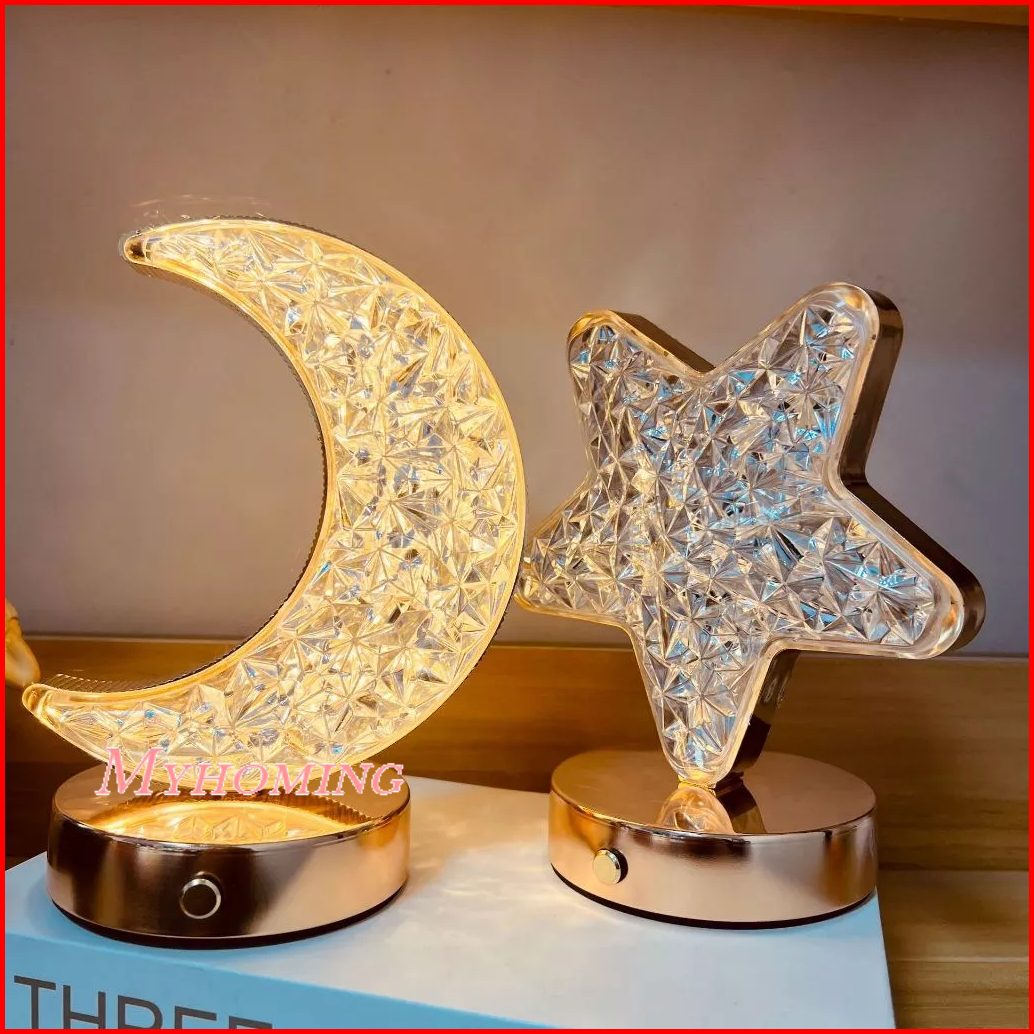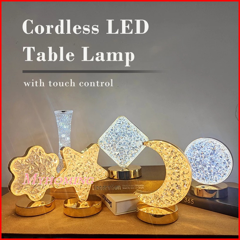 Asli--ready Stock Lampu Meja Hias Aesthetic Acrylic Crystal Led Desk Lamp 3 Warna Peredupan Sentuhan Cahaya Cocok Untuk