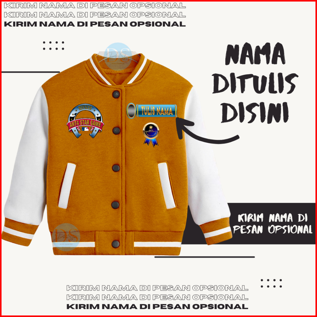 Jaket Anak Free Custom Req Nama Jaket Baseball Cowok Cewek Usia 2-12 Tahun