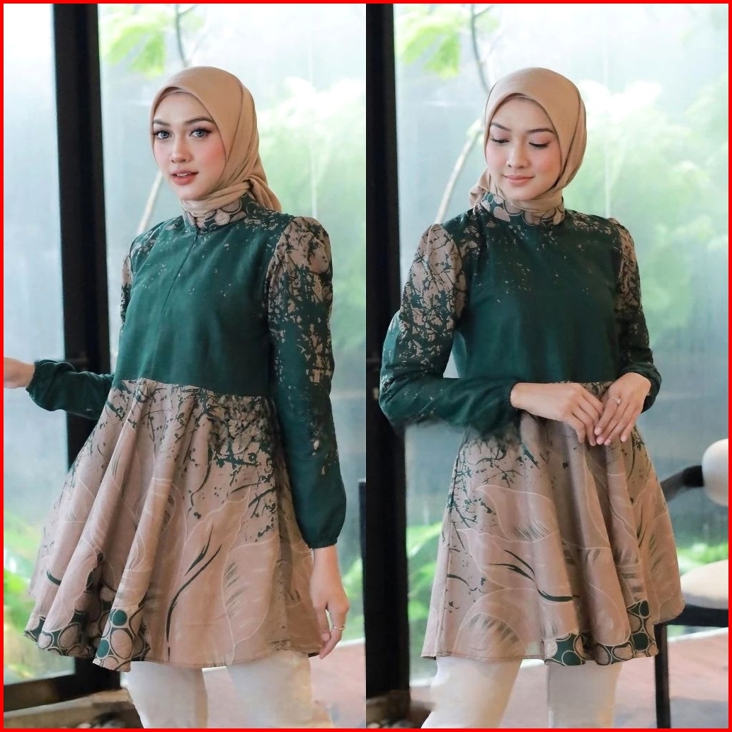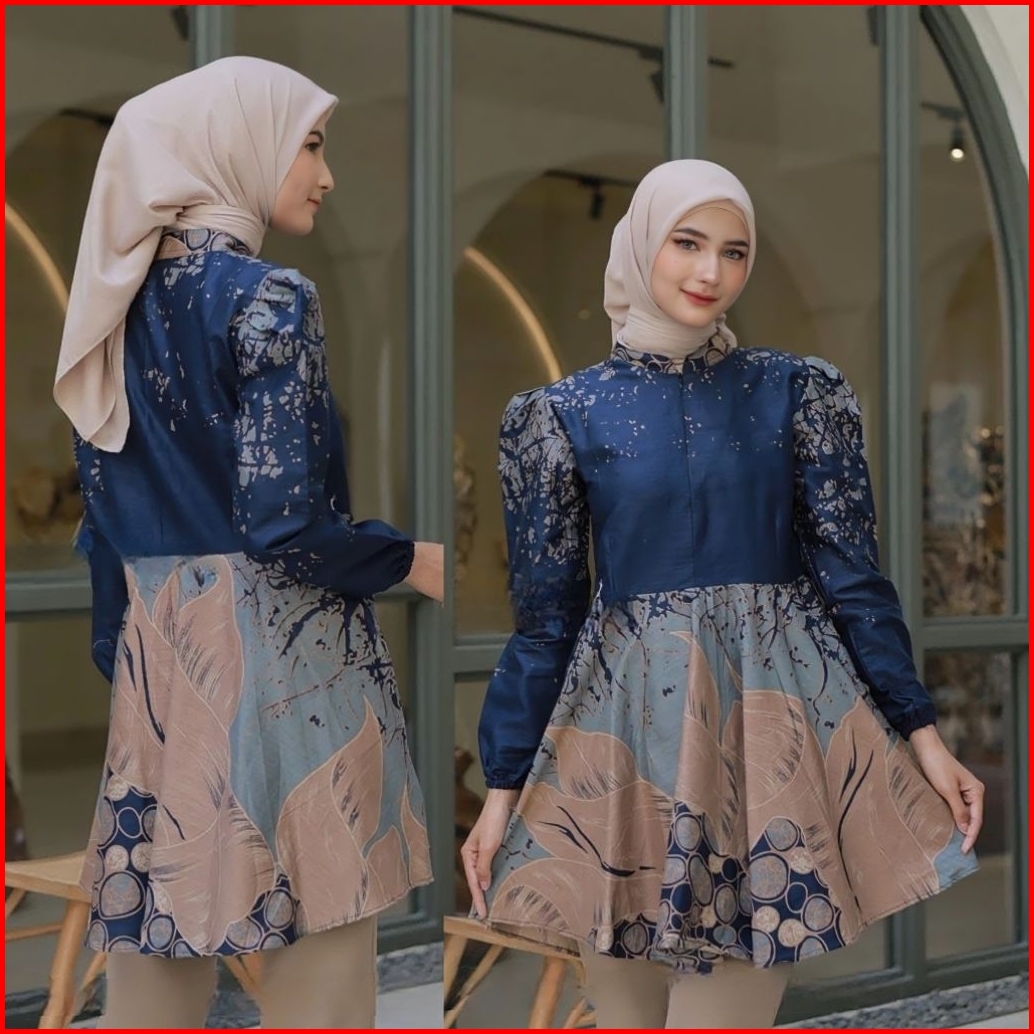 Atasan Batik Wanita Blus Batik Lengan Balon Model Peplum Payung Blus Terbaru Faeybtk