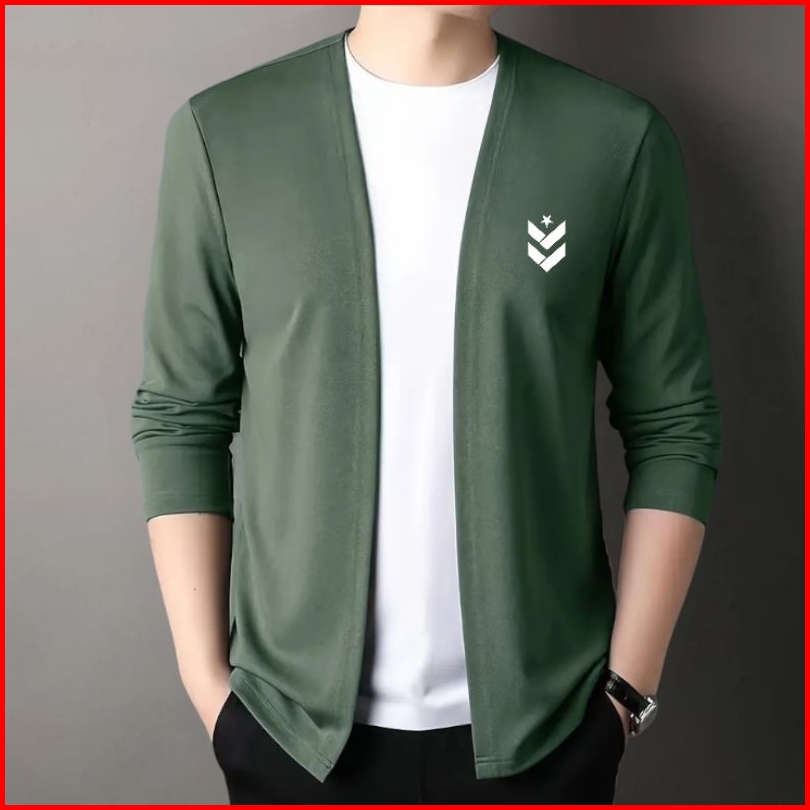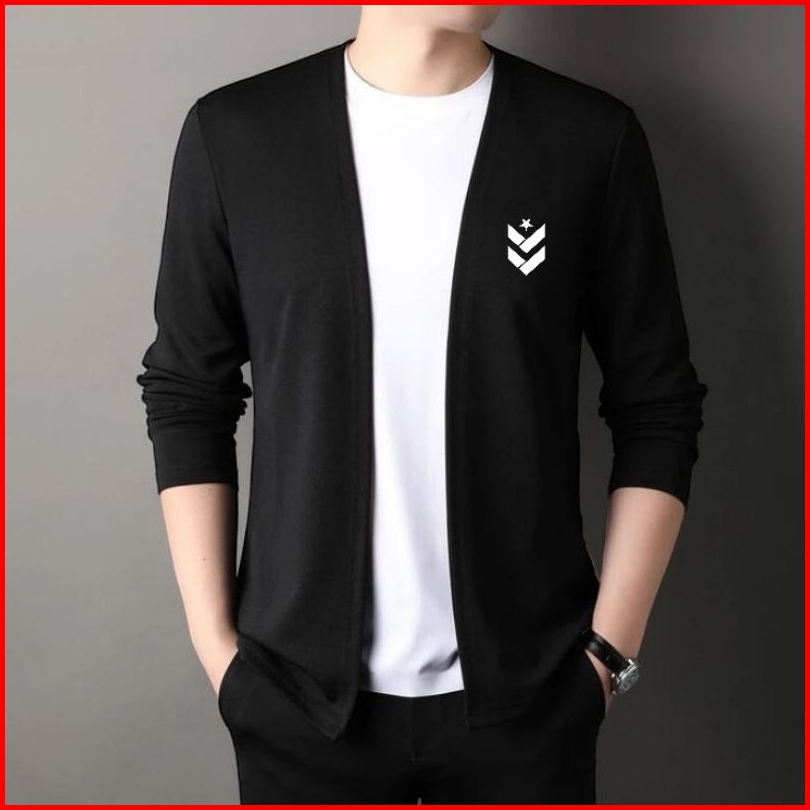 Kaos Lengan Panjang Cardigan V-neck Atasan Rajut Pria Distro Pakaian Kasual Pria Jahitan Mode Dua Badan Aktif