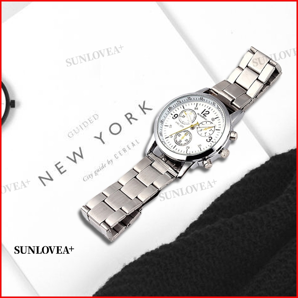 Sunlovea Jam Tangan Analog Pria Baja Tali Jam Tangan Stainless Steel Tahan Air