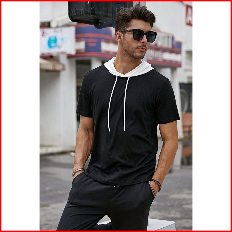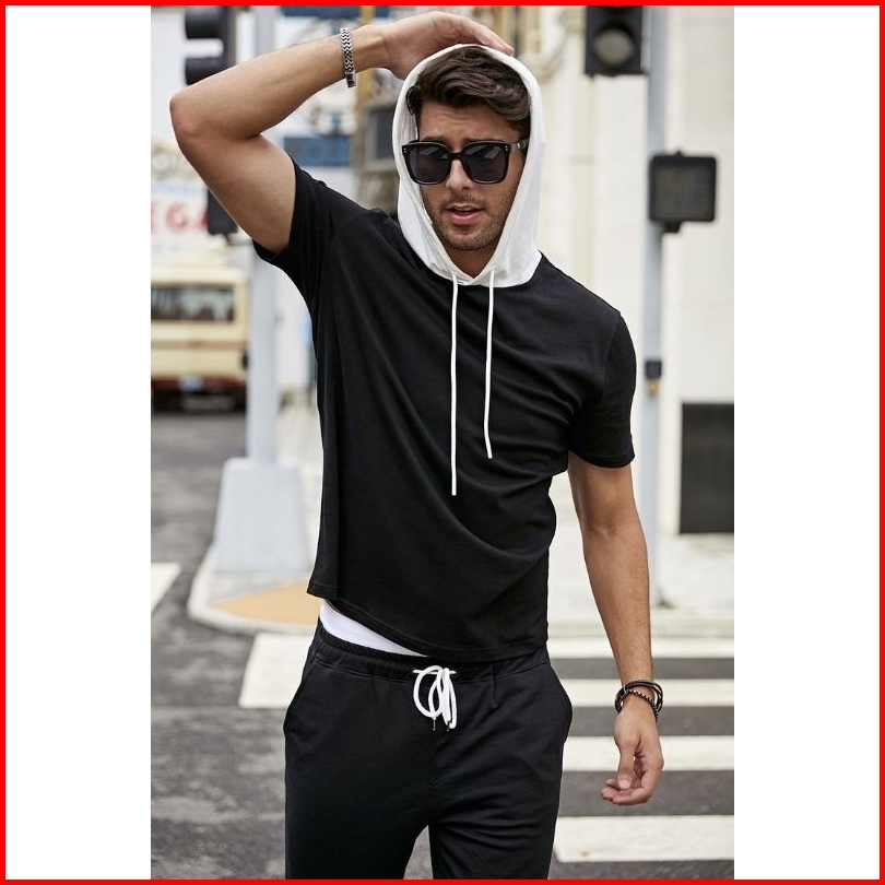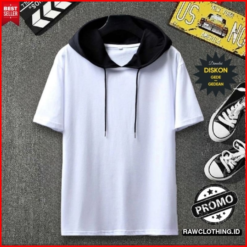 Kaos Hoodie Lengan Pendek Pria Wanita Hoodie Polos Pecah Pola Terbaru Bahan Cottontery Tebal
