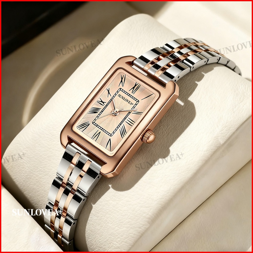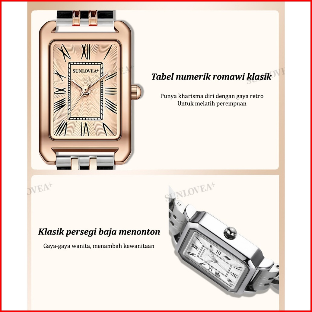 Sunlovea Jam Tangan Persegi Wanita Ins Angin Mahasiswa Sederhana Gaya Vintage Klasik Desain Minimalis Skala Romawi Jam T