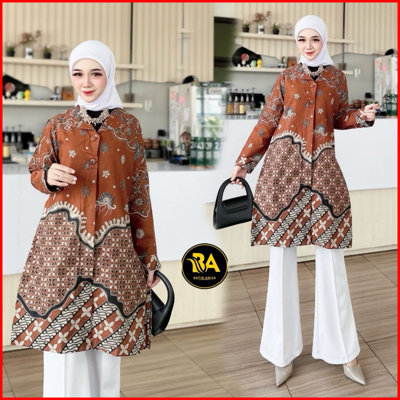 Tunik Batik Wanita Modern Atasan Batik Wanita M L Xl Xxl Jumbo Baju Batik Wanita Terbaru Premium Dress Batik Wanita Terb