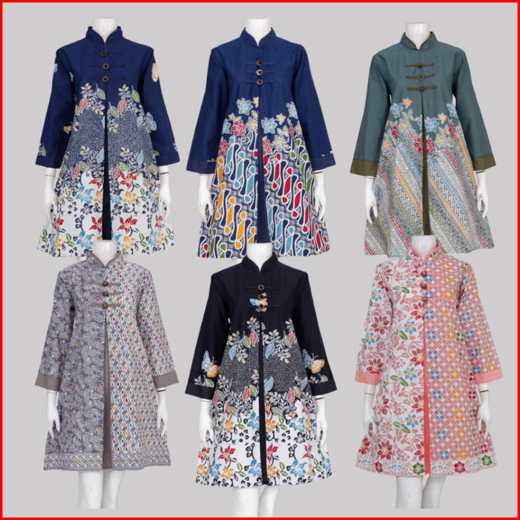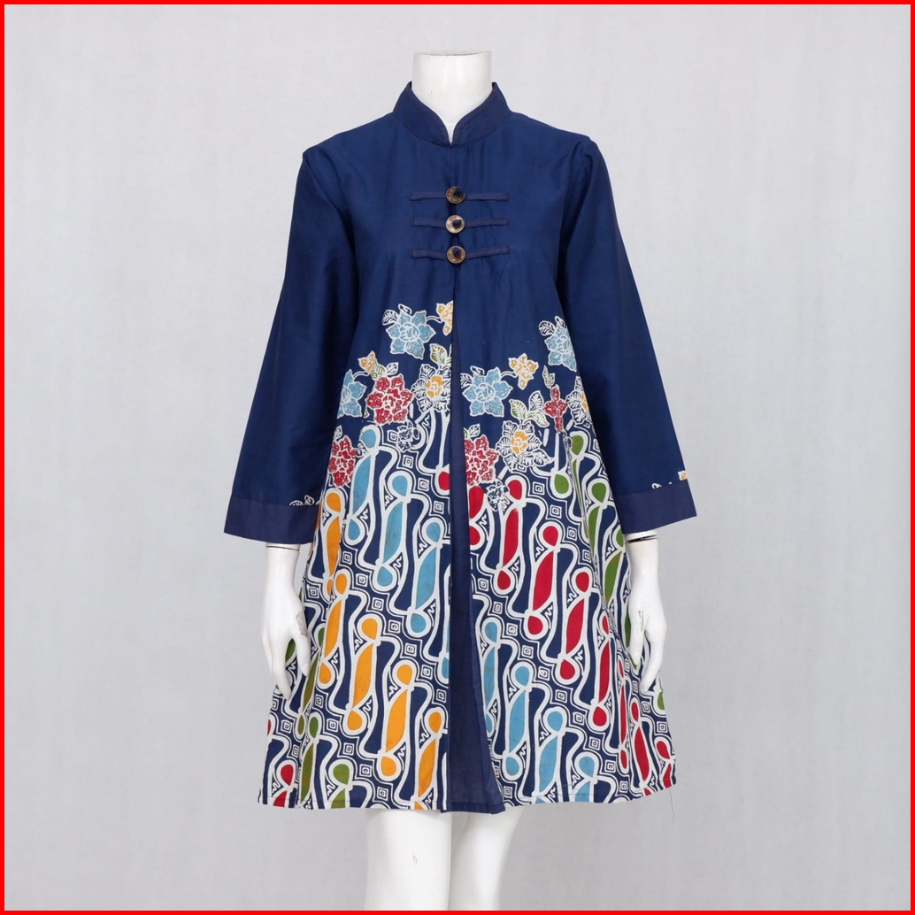 Elzaeda Tunik Batik Wanita Modern Jumbo Ld 120 130 140 Atasan Batik Tunik Batik Pias Koin Premium Dress Kerja Wanita Bat